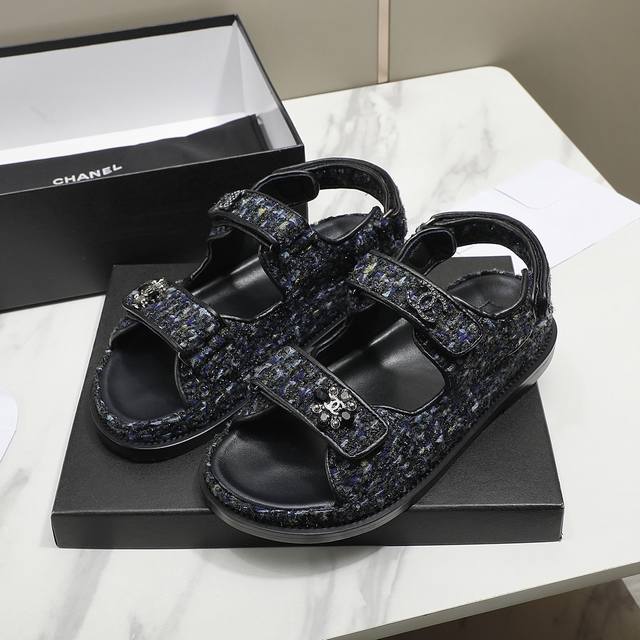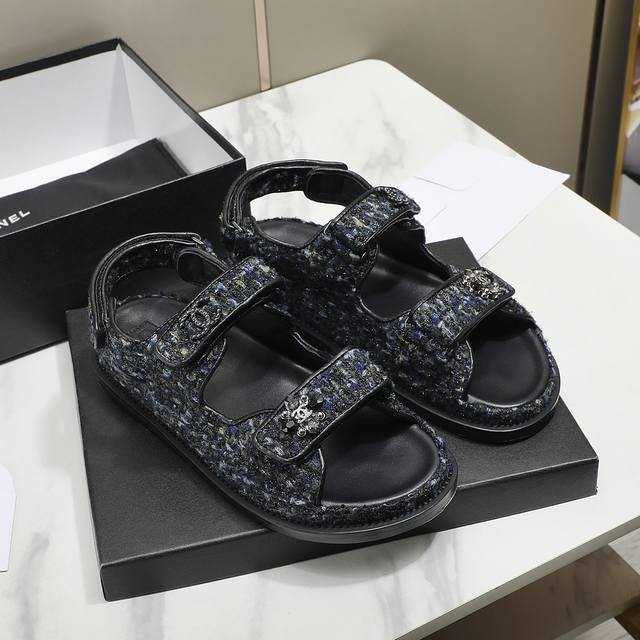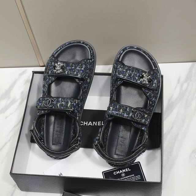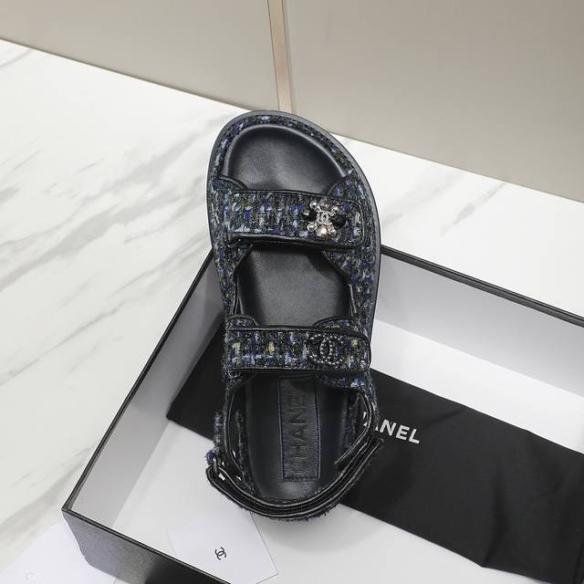 冲量价: C家23Ss新款魔术贴凉鞋顶级专柜品质 每年必入的经典款之一!23年新出的精致花朵小香扣搭配设计 更加彰显质感和品味~所有材质都根据原版定制!鞋面:进口斜纹软尼内里垫脚均为进口羊皮!Pu中底台,橡胶大底35-40码 特殊面料