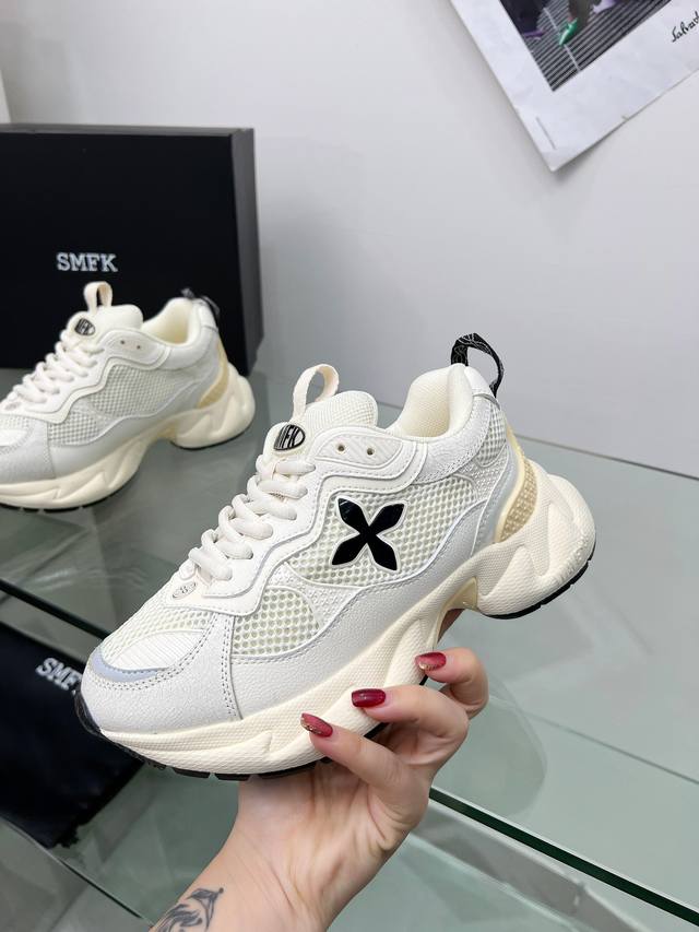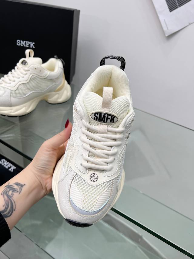 冲量价: Smfk2024最新发布老底鞋 透气百搭 穿着舒适。增加了全新品类 慢跑鞋。原版一比一开发。 黑白配花。 原版进口透气网。 头层裂纹牛皮。鞋底增高3-5Cm 。码数35-41。颜色。白色。黑色。黑白配色。