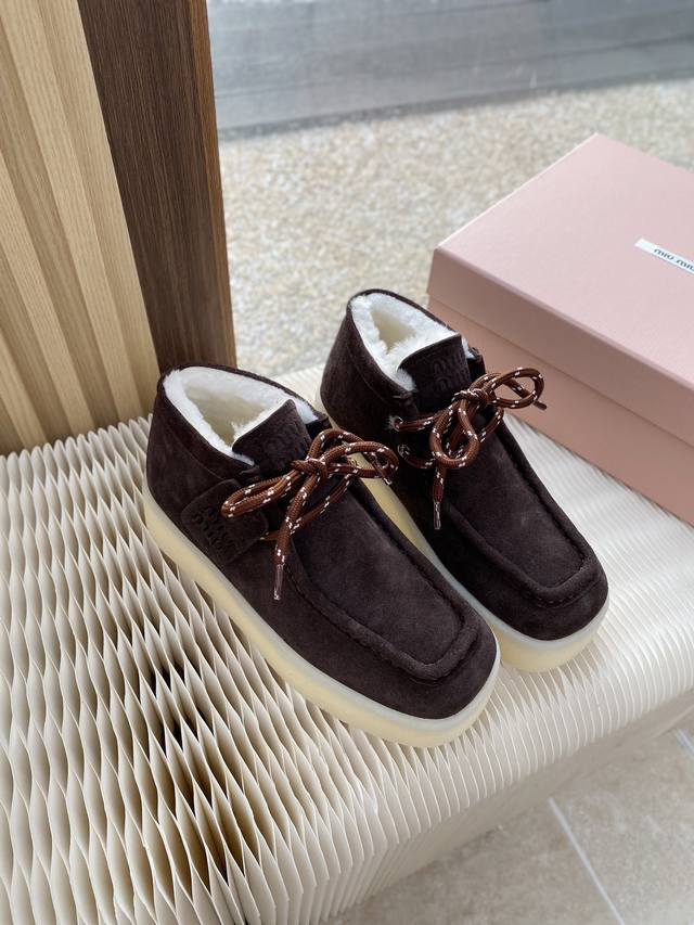 Miumiu 缪缪 秋冬走秀款 系带厚底加毛内里乐福鞋