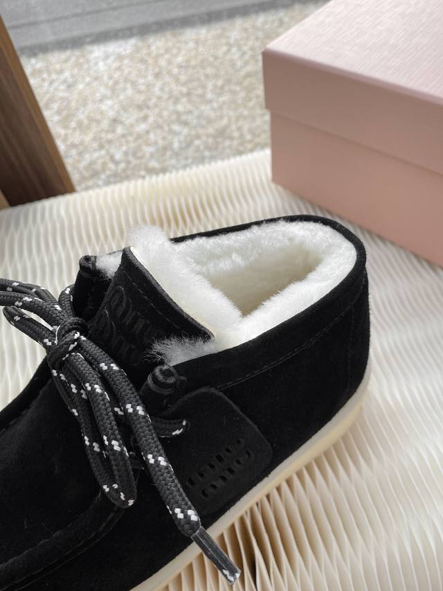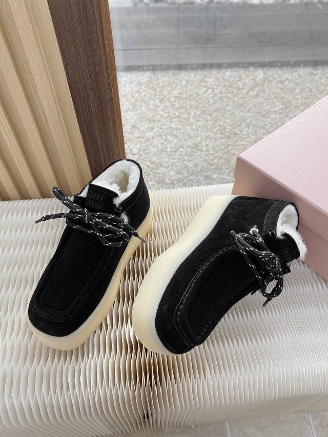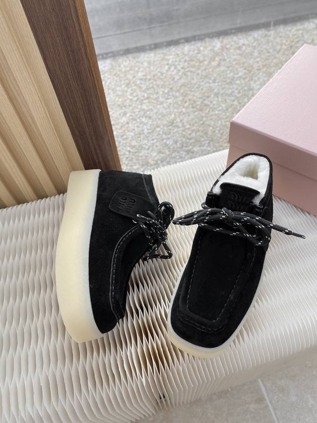Miumiu 缪缪 秋冬走秀款 系带厚底加毛内里乐福鞋