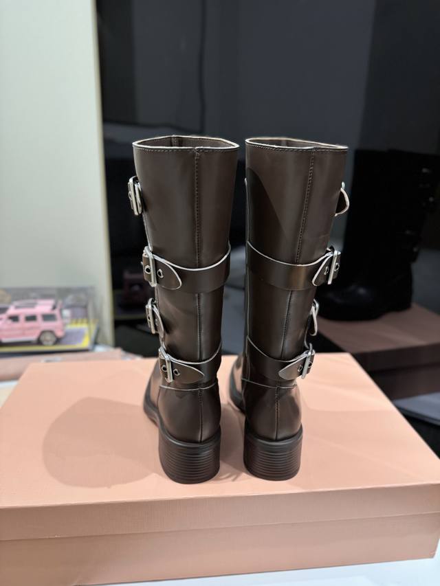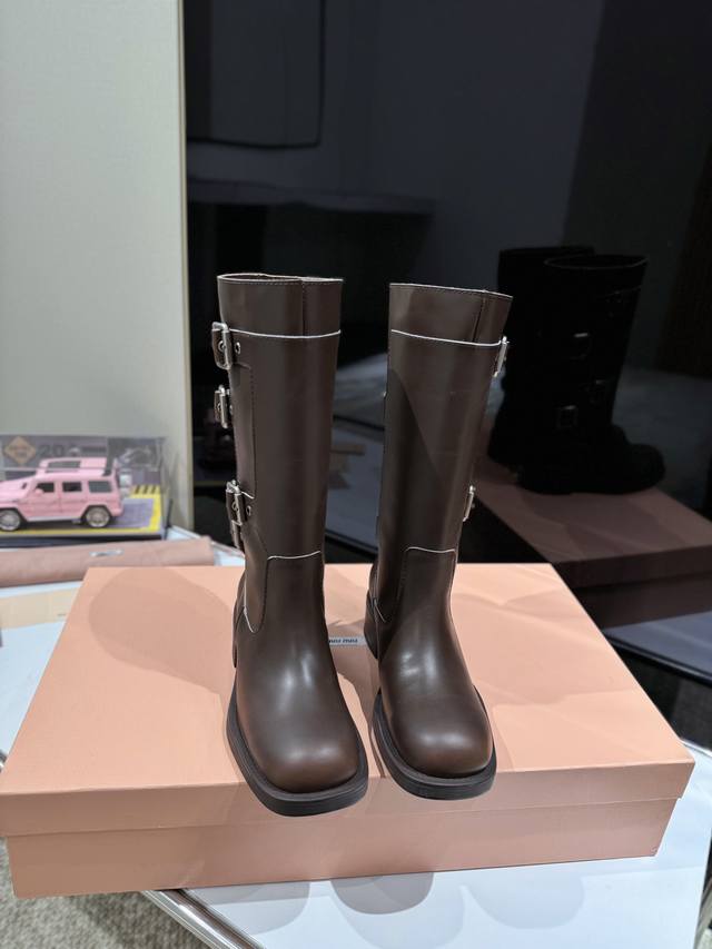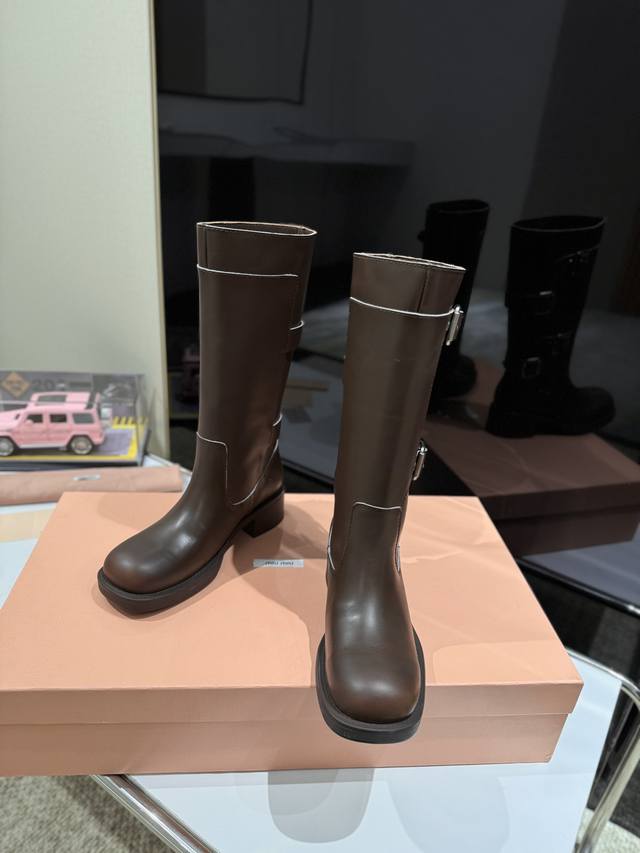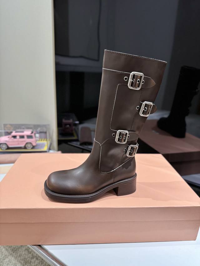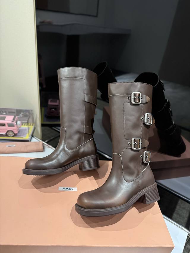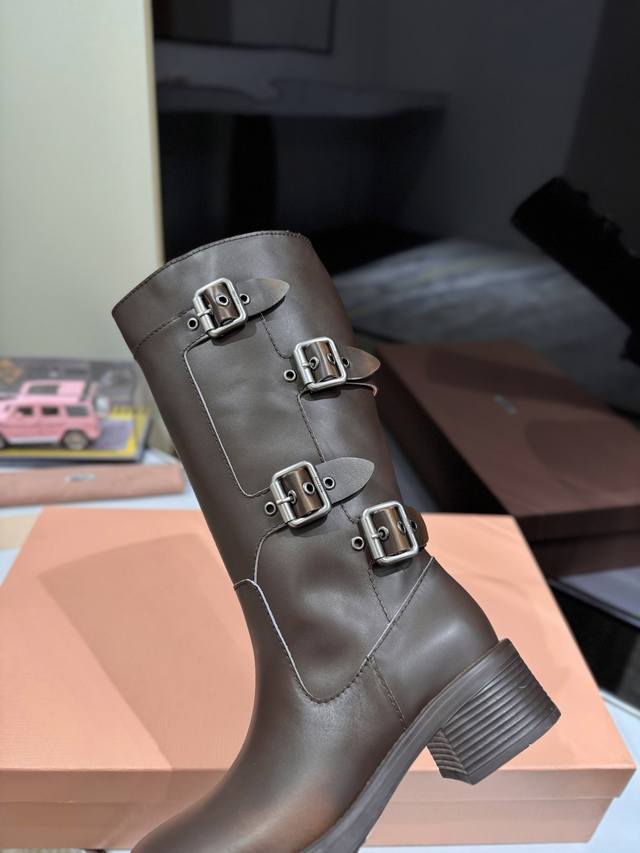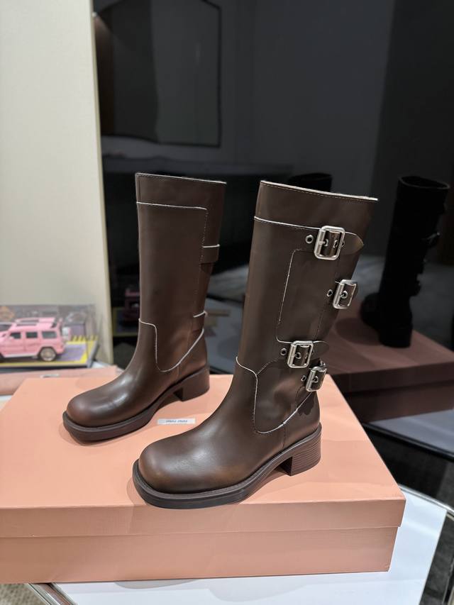 ,酷飒酷飒的延续了爆款风格miu 24秋冬秀款短靴长靴经典机车靴造型帅气摩登鞋面植糅小牛皮质感超好