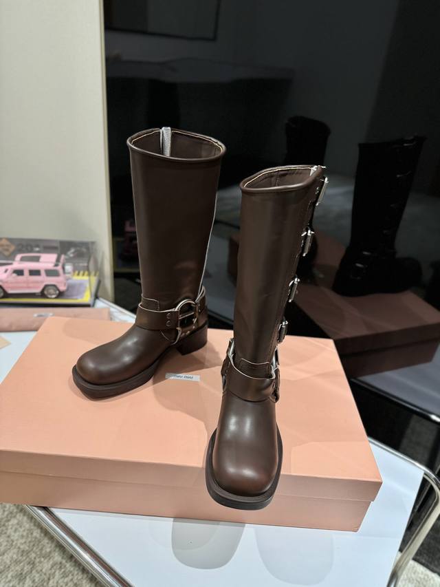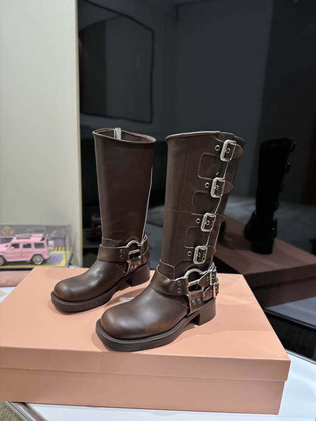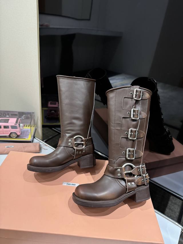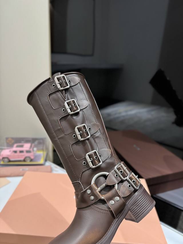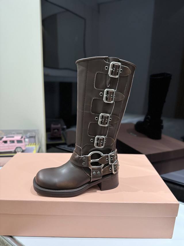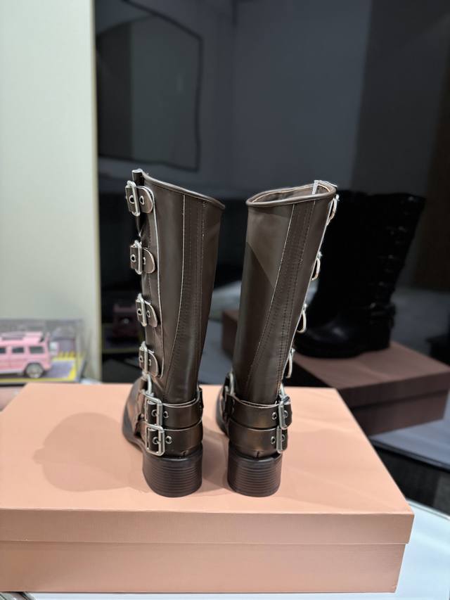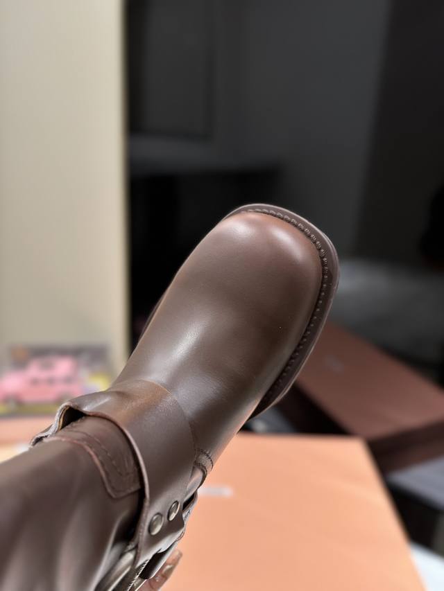 ,酷飒酷飒的延续了爆款风格miu 24秋冬秀款短靴长靴经典机车靴造型帅气摩登鞋面植糅小牛皮质感超好