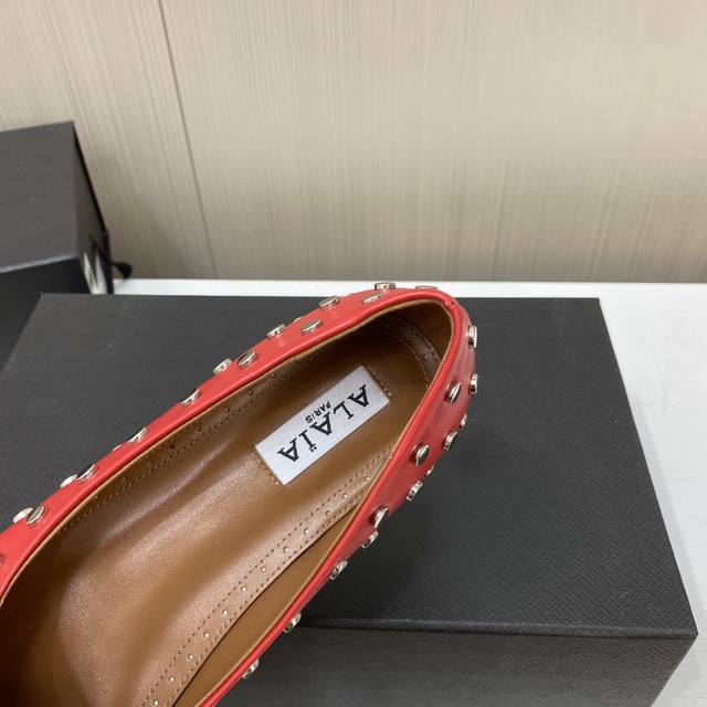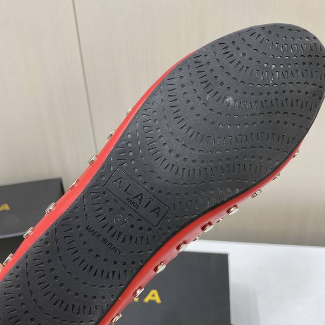 原版购入法国一线奢侈品牌alaia 阿莱亚24Ss法式仙女芭蕾舞平底跳舞鞋,Alaia品牌源自其创始人,Azzedine Alaia是上世纪80 年代“超紧身性感”风潮的创始人,被称作“King Of Cling”, 他是时尚界最传奇的设计师之一 Azzedine Alaia 聪明地将性感一边更夸张,既清醒谨慎摩登,又超贴身性感铆钉、金属环扣、紧束胸衣和性感蛇皮,这些 Alaia 的设计元素仍不断出现在各大品牌的秀台上 Alaia品牌的风格一