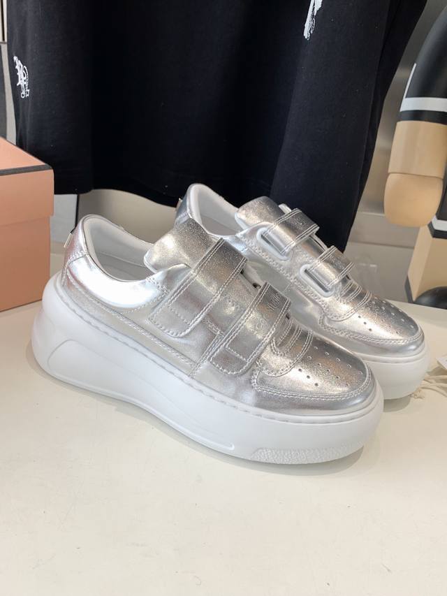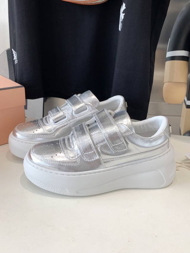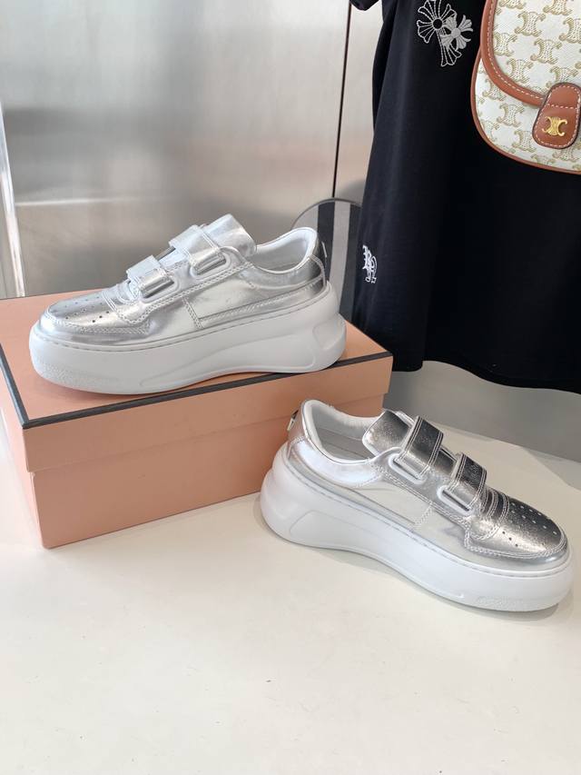 出厂价 Acne Studios 秋冬新款, 厚底轻便魔术贴休闲鞋。由经典笑脸小白鞋升级,搭载厚度 6.5Cm 超轻大底,皮面细腻有光泽,弹性和柔软度也相当 Ok,女码三色 35-40,已出大货