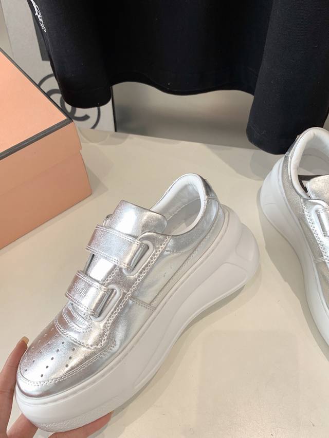 / 出厂价 Acne Studios 秋冬新款, 厚底轻便魔术贴休闲鞋。由经典笑脸小白鞋升级,搭载厚度 6.5Cm 超轻大底,皮面细腻有光泽,弹性和柔软度也相当 O