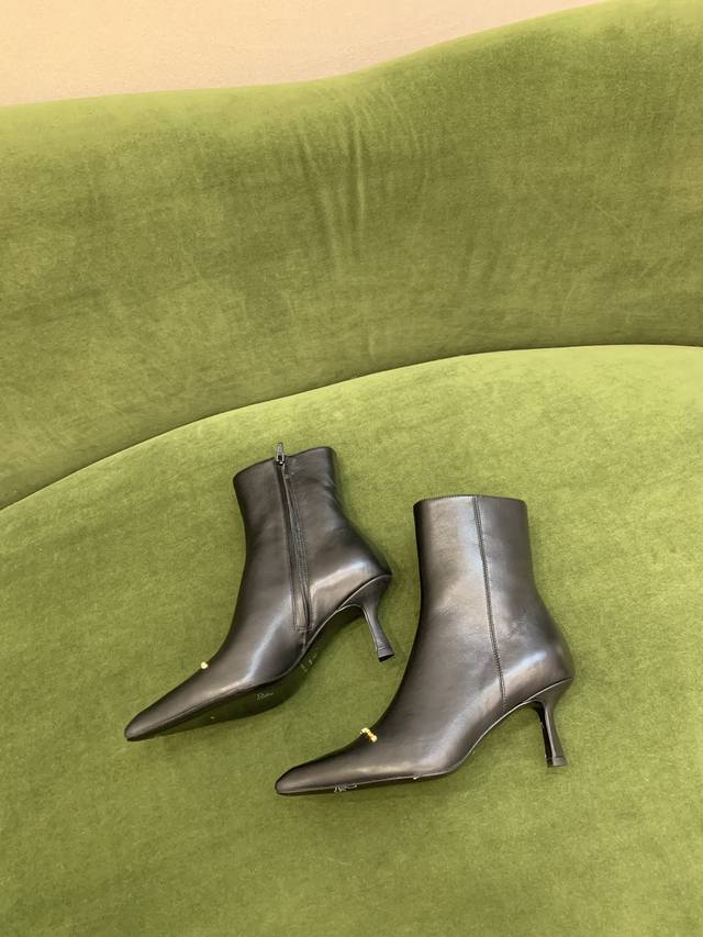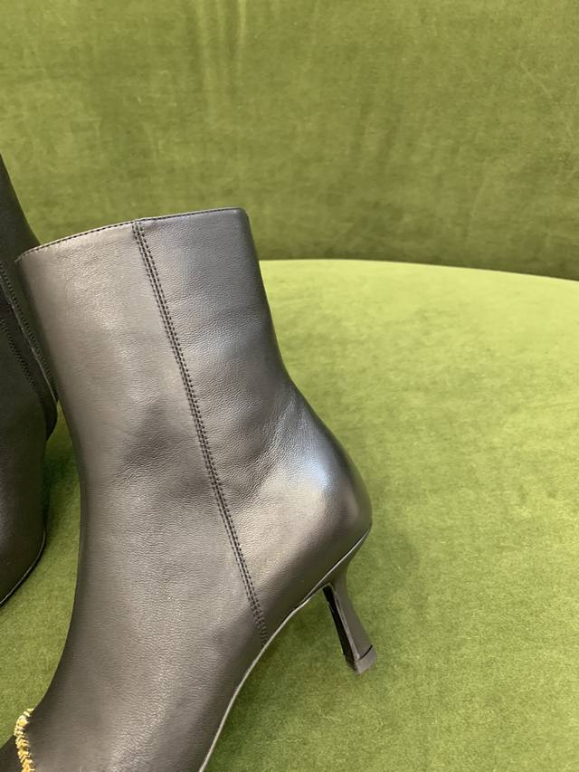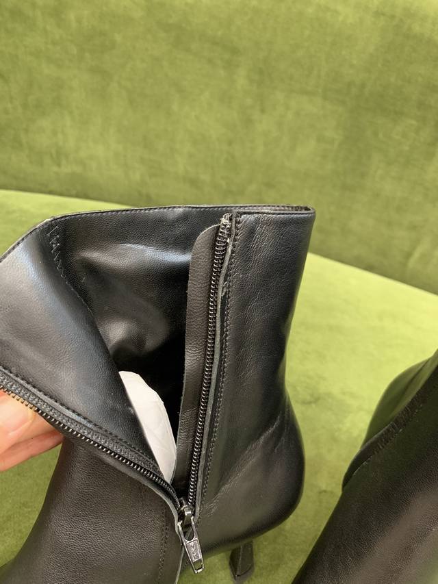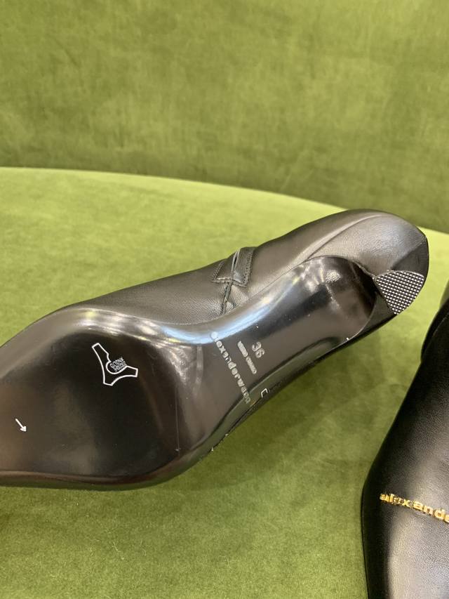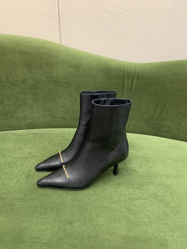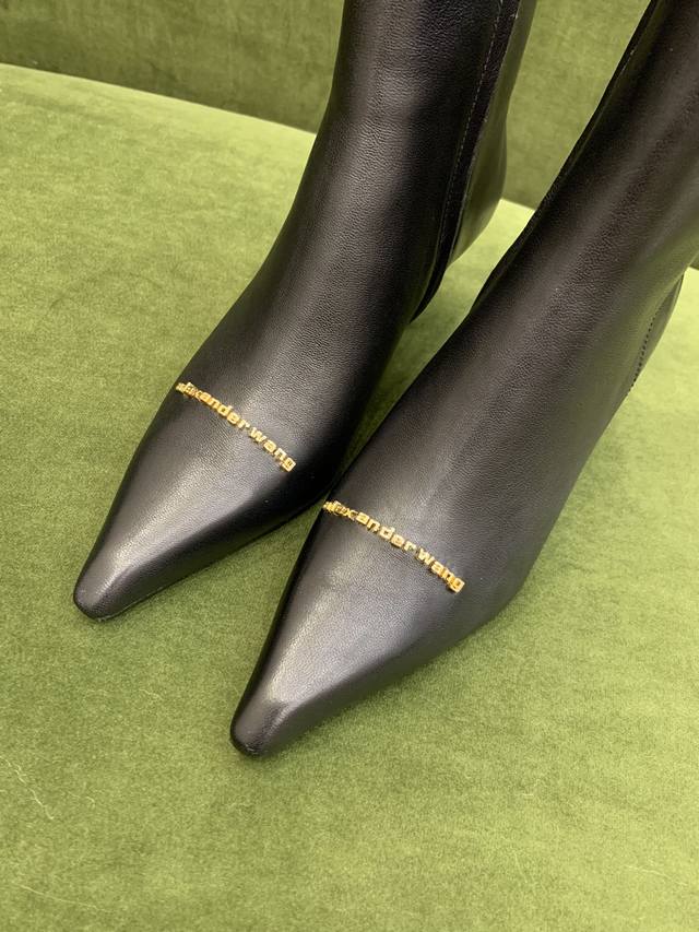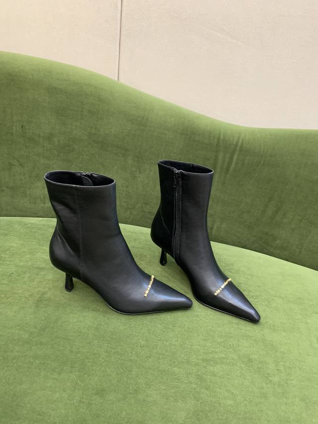 出厂价 Alexande* Wang 大王新款尖头高跟短靴踝靴 金属字母logo装饰简约大气 人气百搭单品 鞋面超软羊皮 内里垫脚羊皮 意大利真皮大底 跟高5.
