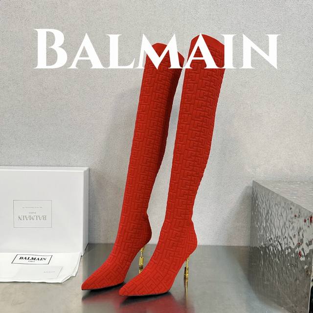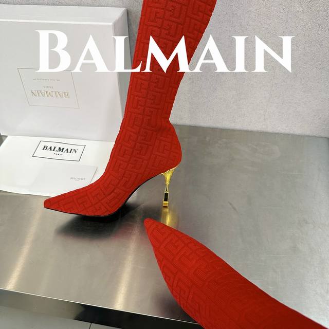 独家首发 巴尔曼 最新款提花铁塔跟袜子长靴