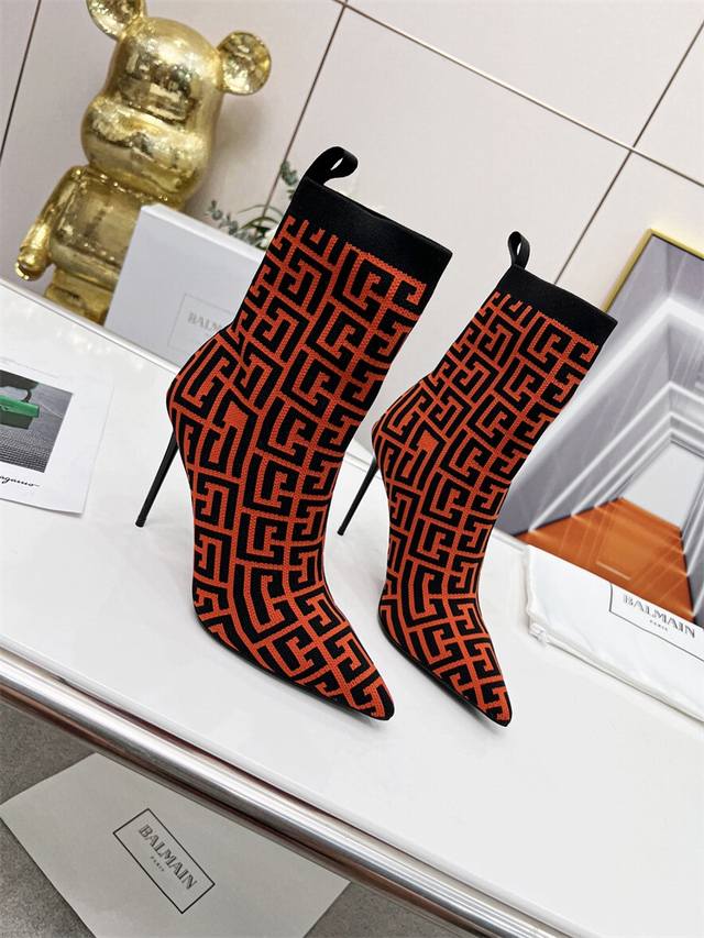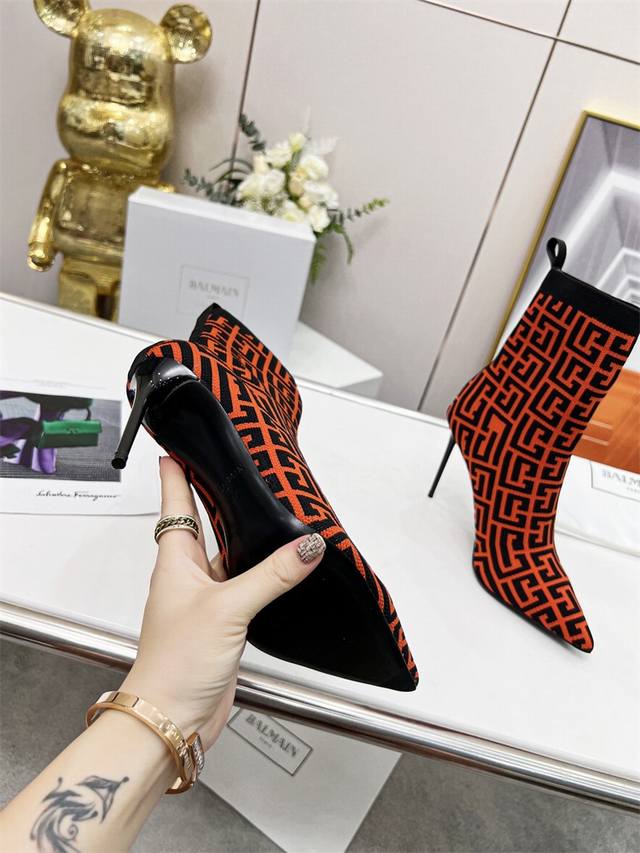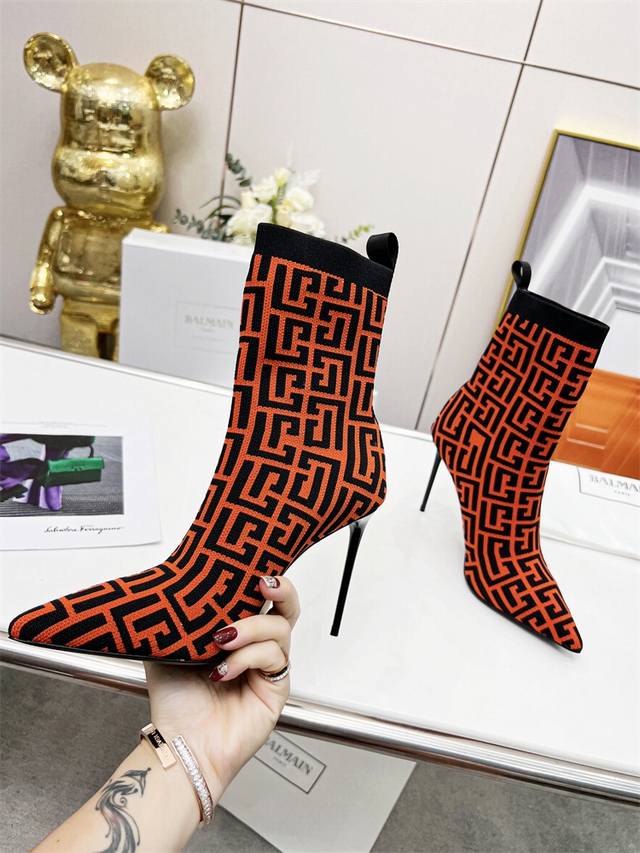 / 出厂价 Balmain 巴尔曼 Fw 秋冬新款针织靴! 海外订购原版,1:1完美复刻! 鞋面:原版定制飞织鞋面 内里..垫脚:牛皮里 跟高:9.5Cm Size