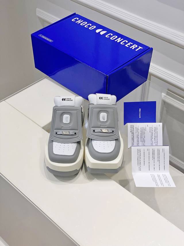 成立于2017年,是一个立足于当前文化的设计鞋履品牌,擅长用简约而锐利的设计语言来打破常规的认识。新一季度的 Choco Concert 将会继续在不对称的设计风格中找到不一样的效果,并且加入了户外元素,将其于不对称的鞋底设计相融合,造就时尚设计感于实用性相并行的体验感。方圆鞋:鞋如其名,即一只为方形,一只为圆润型,用无序性来表达想打破墨守陈规的欲望,即对常识的再度思考和重组。低帮厚底鞋,百搭又时