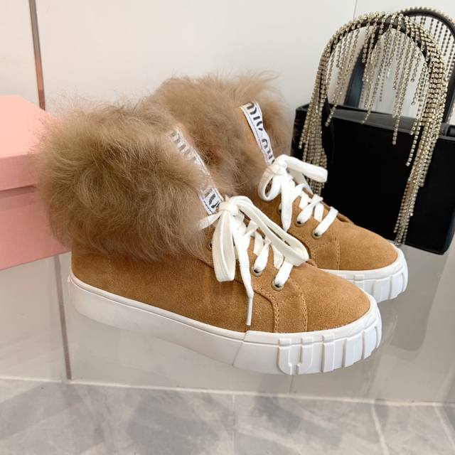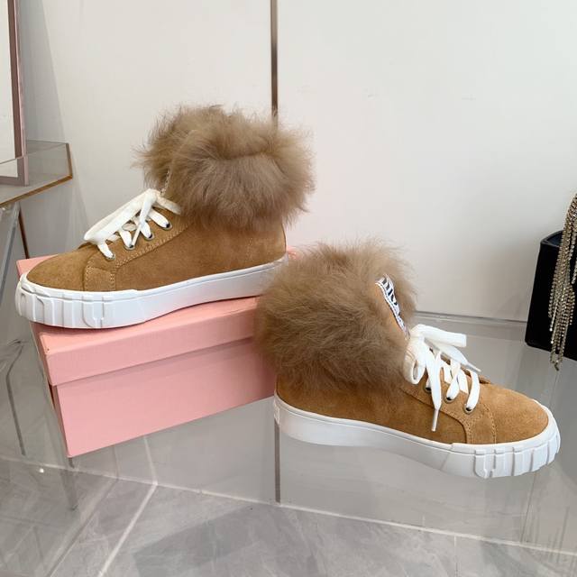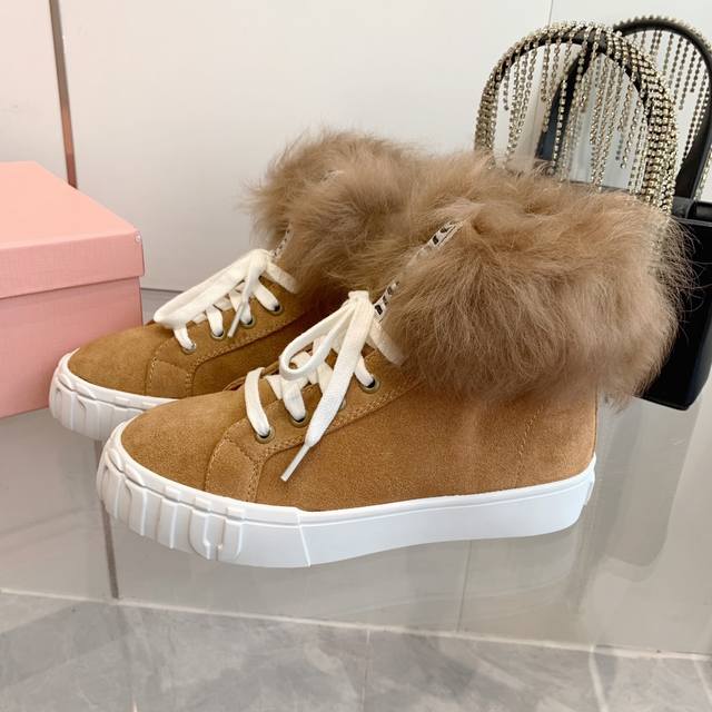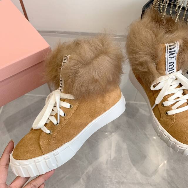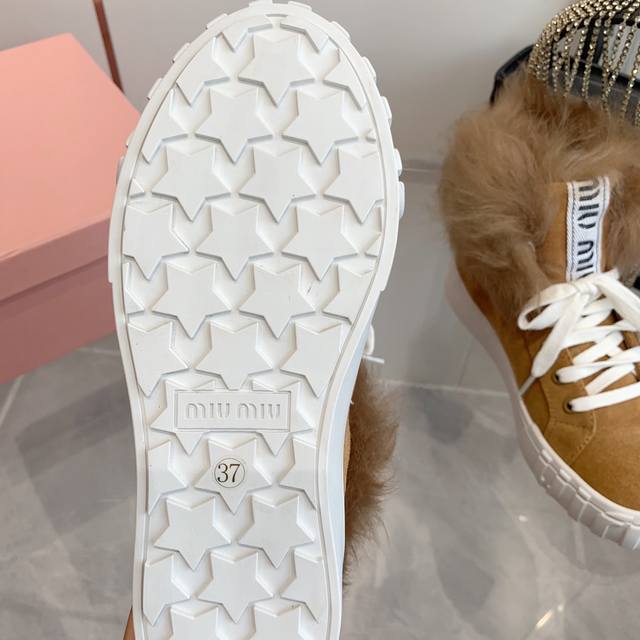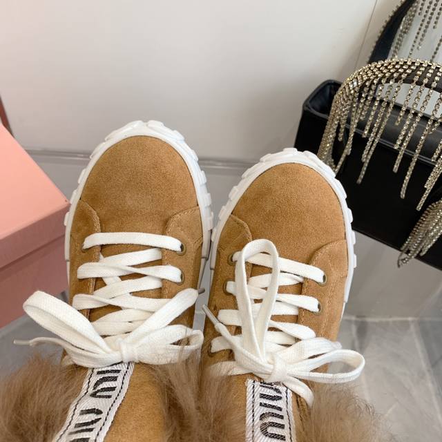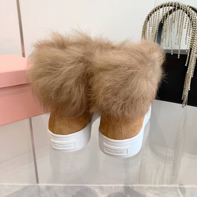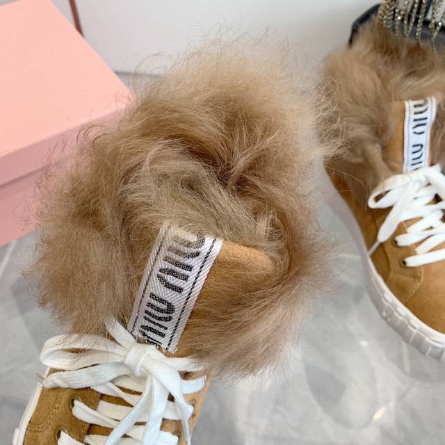Miumiu缪缪雪地靴棉鞋 秋冬新款棉鞋毛毛单鞋来自miu Miu系列的细节特写 新季的潮流要素