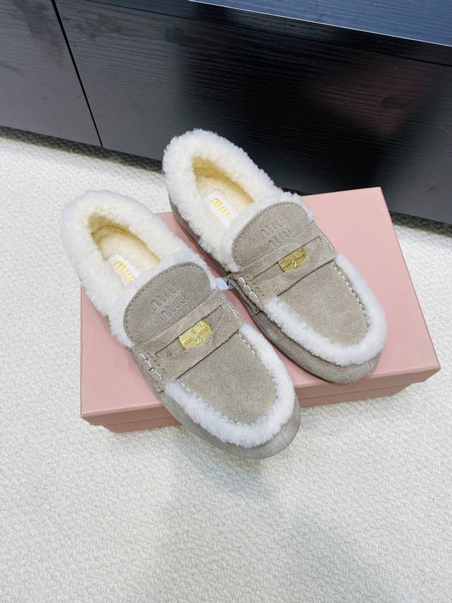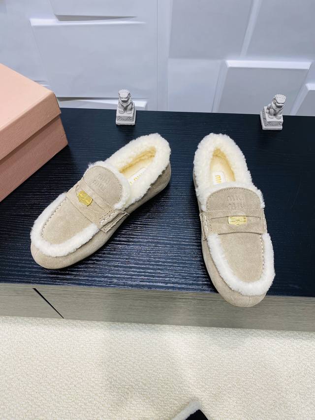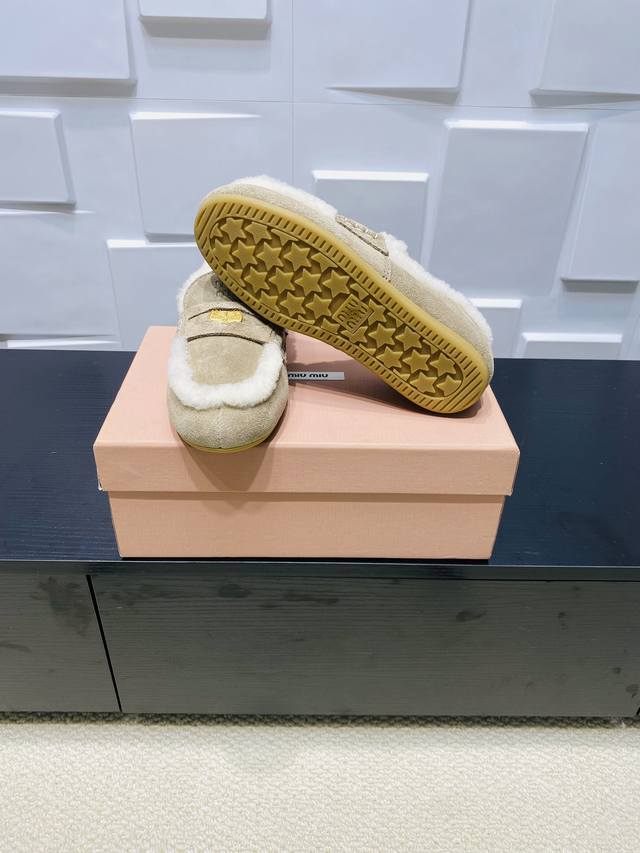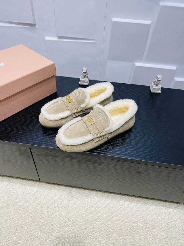 Miumiu 缪缪2024Ss秋冬驾车钱币款100%纯羊毛乐福豆豆鞋 走秀新款 开车小姐姐的福音复古时尚 简约高级 随意搭配 上脚非常舒适 鞋面采用金币和压花徽标logo彰显别具一格的经典格调,