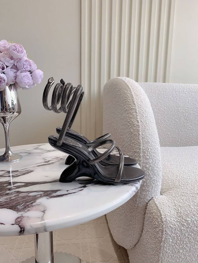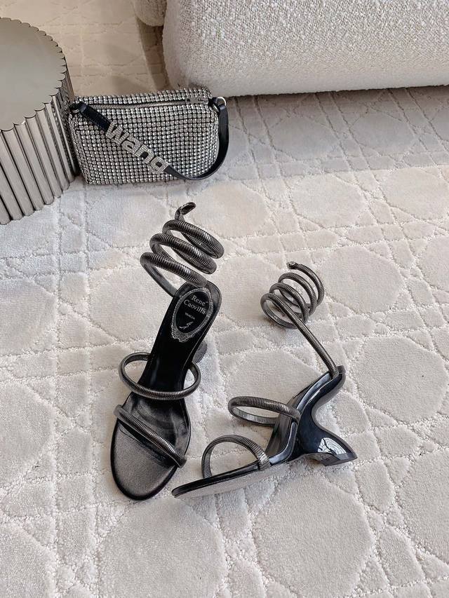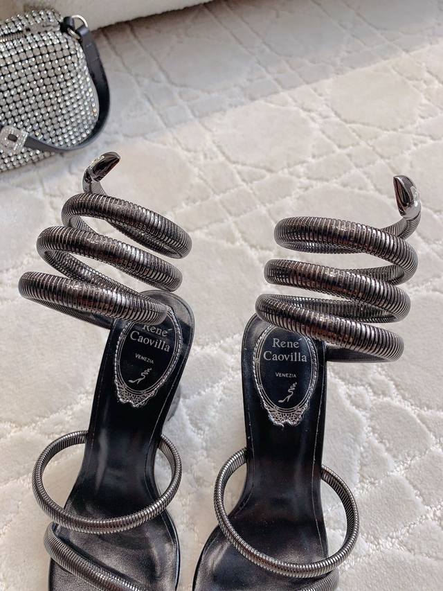 Ren* Caovill*新款juniper系列欧系蛇形高跟凉鞋 华丽的金色以张扬方式迈入夏季 金属材质一点也不磨脚 极简的线条 水晶点缀增添优雅气息