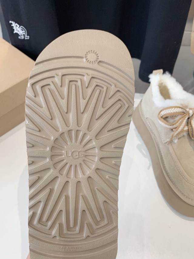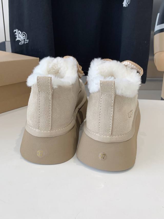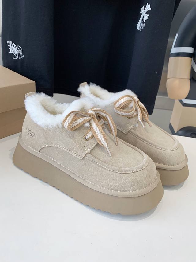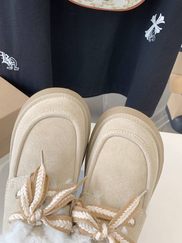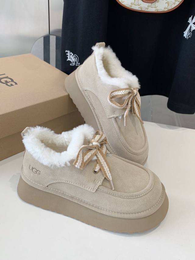 出厂价 Ugg厚底系带雪地靴 现货好拿 美媚必选,秋冬长装短装好配衣服,超显身材秋冬女性必备.保暖神器 源自澳洲,百搭2024新款,Mra级摩卡星羊毛,顶级品质.反毛牛绒面料,与羊毛里的绝美匹配, 简单大方的宽边耐磨轻便发泡鞋底,彰显不凡与大气,冬天极寒不怕断底,防滑耐磨5颗星