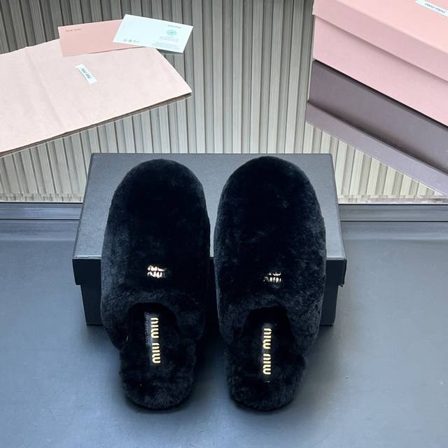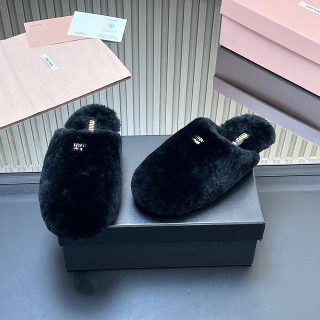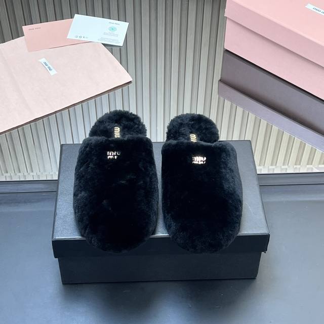出厂价p 所见即所得顶级羊毛内里Miumiu25秋冬新款进口羊毛拖鞋 简约造型,超轻原版开模鞋底,脚感妥妥满分 好穿好搭, 鞋面:羊毛 内里:进口羊毛 Size
