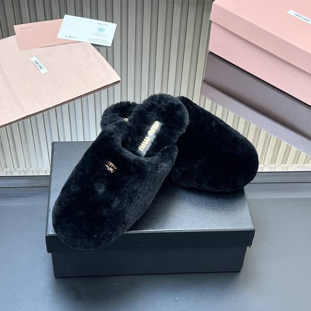 所见即所得顶级羊毛内里Miumiu25秋冬新款进口羊毛拖鞋