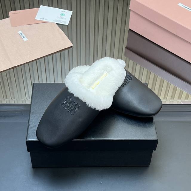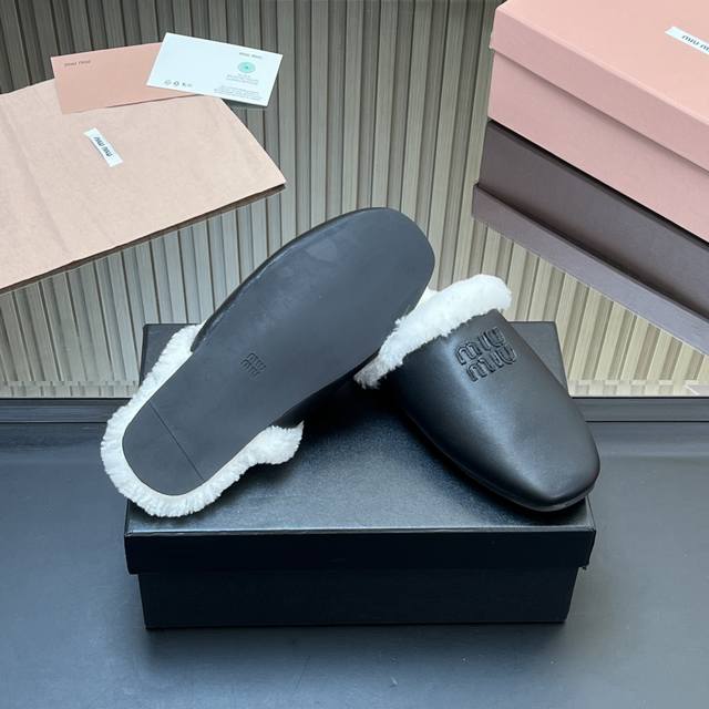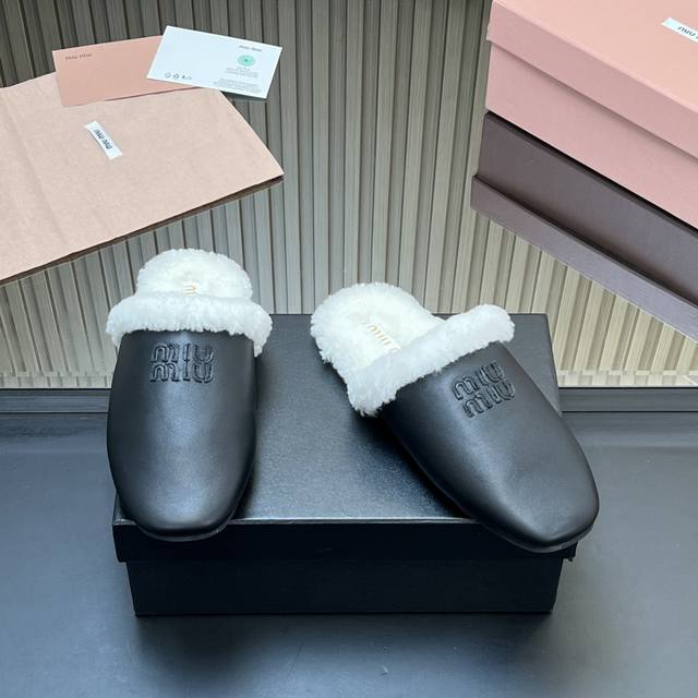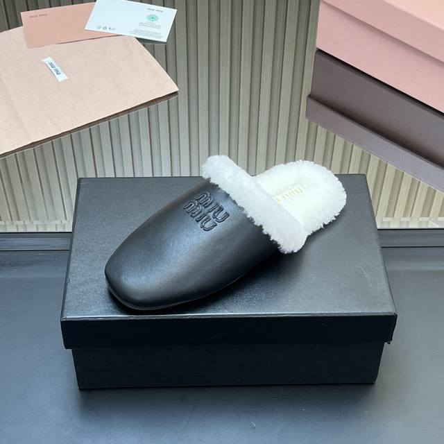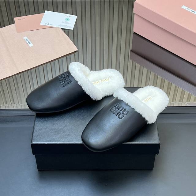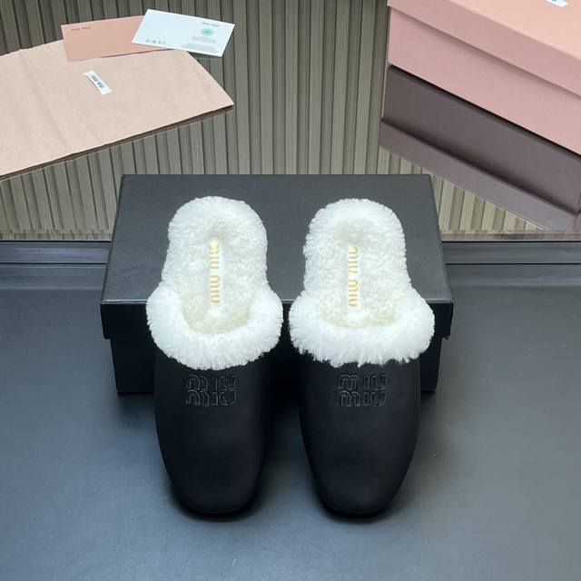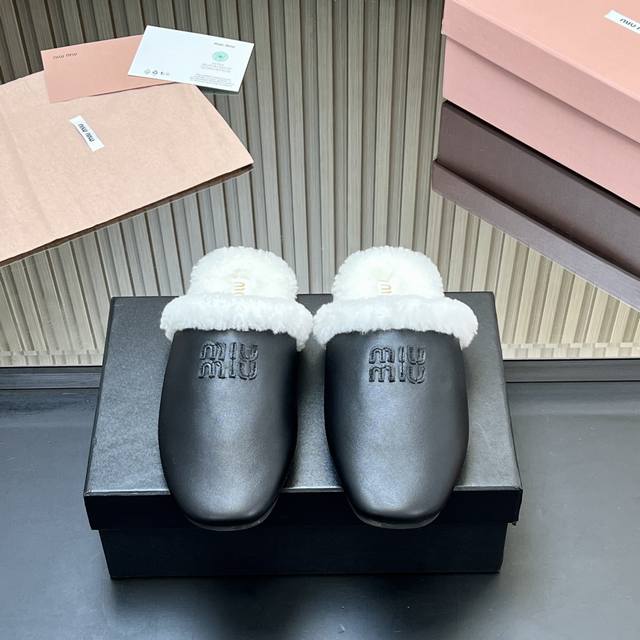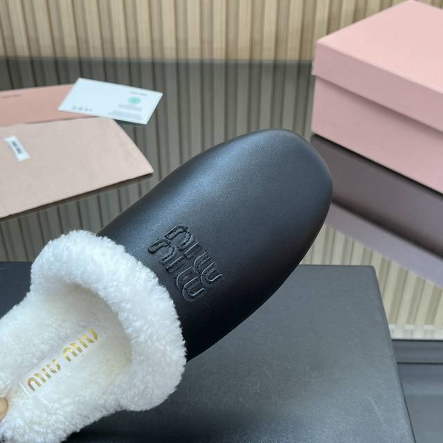 / 出厂价p 所见即所得顶级羊毛内里Miumiu25秋冬新款进口羊毛拖鞋 简约造型,超轻原版开模鞋底,脚感妥妥满分 好穿好搭, 鞋面:羊皮 内里:进口羊毛 Size