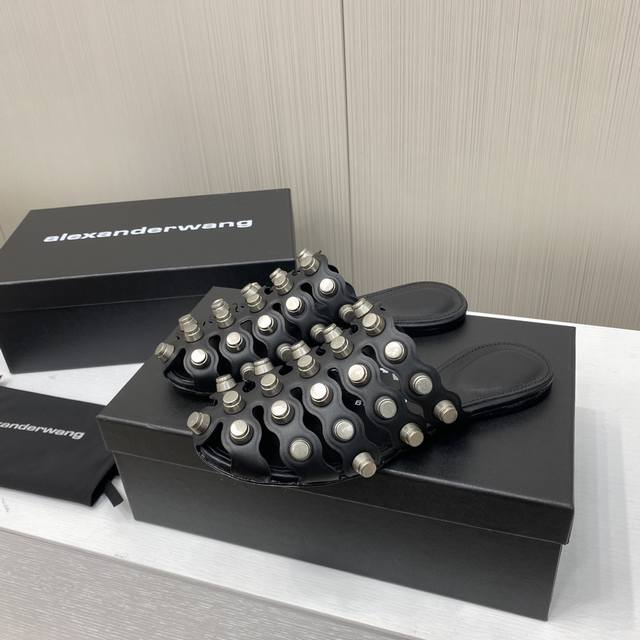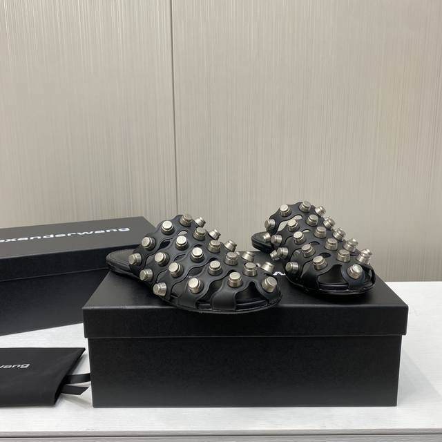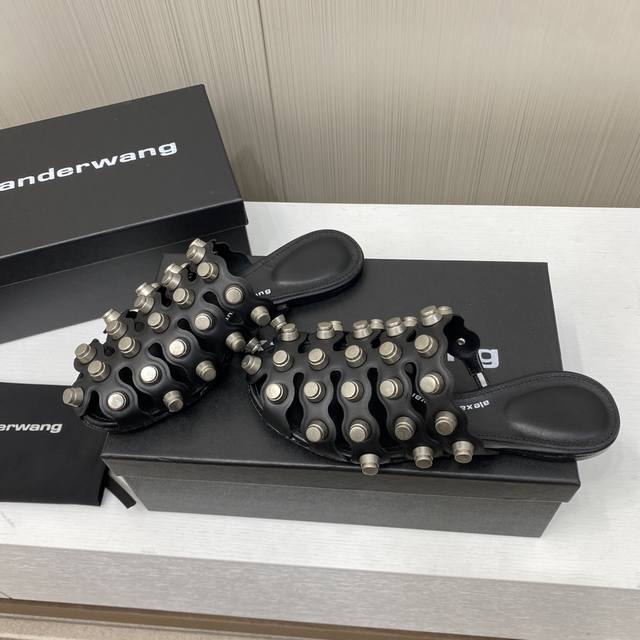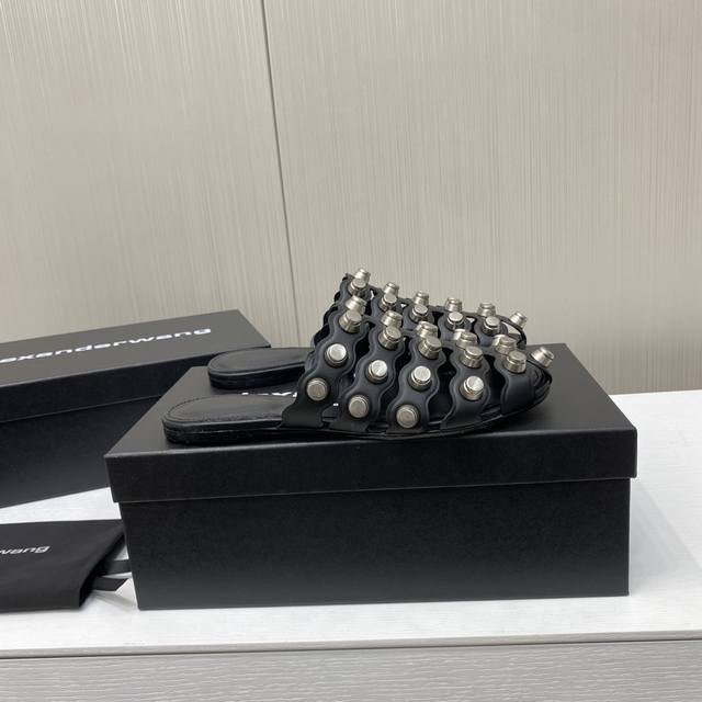Alexander Wang 亚力山大王 2025早春新款铆钉镂空半托拖鞋平底拖鞋 简约时尚