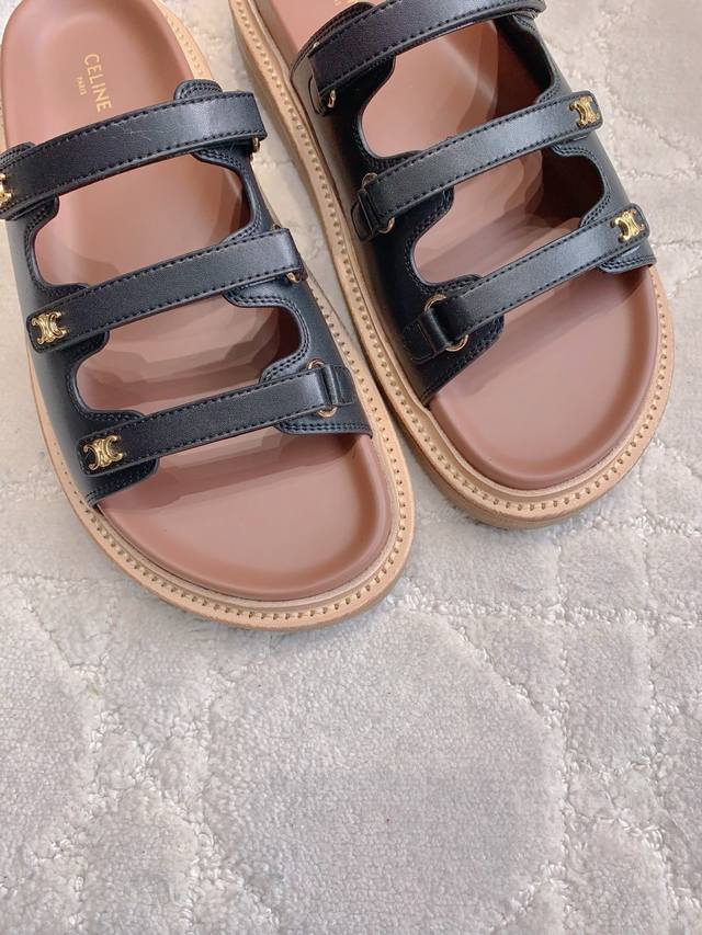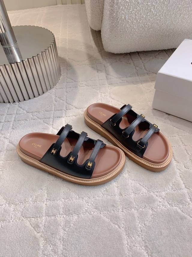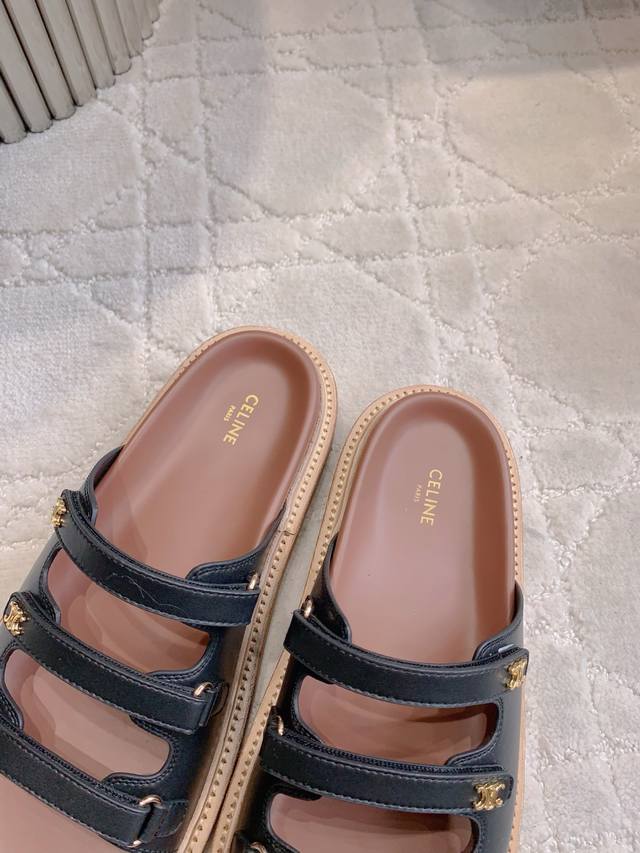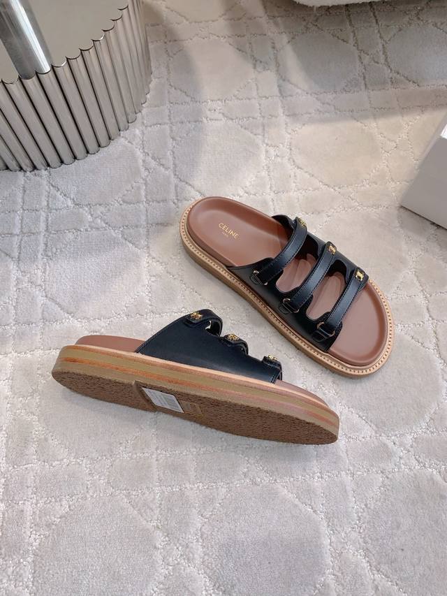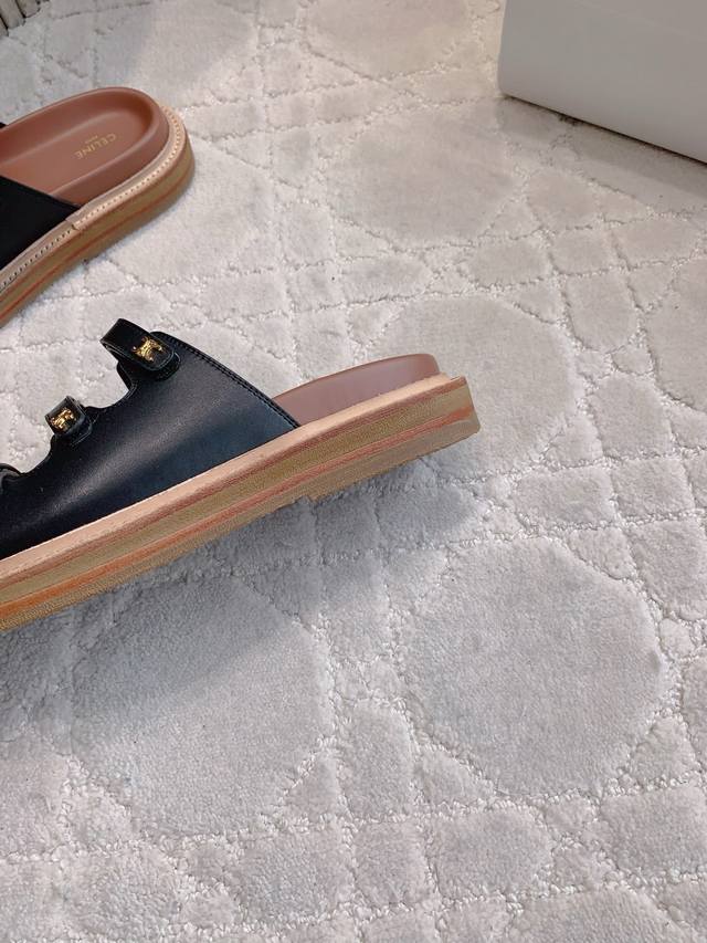 Celin*新款厚底拖鞋 经典Logo搭扣装饰简约耐看 Zp购入1:1打造