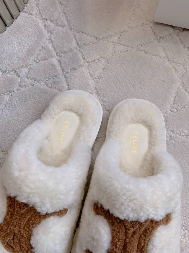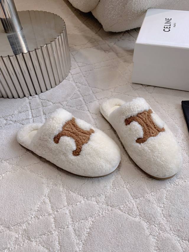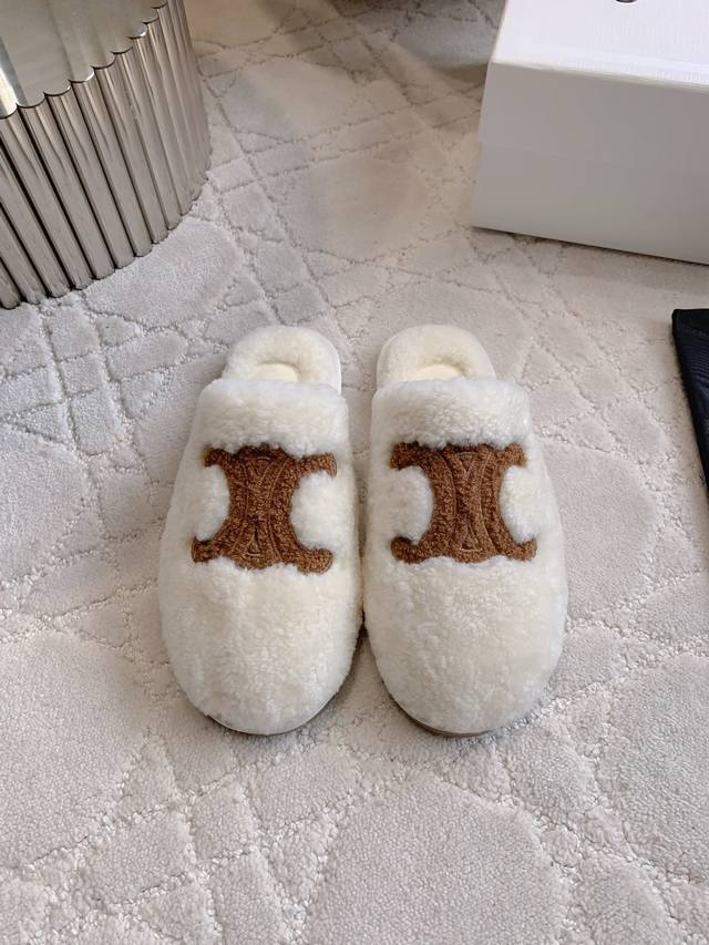 Celin*新款羊毛半拖鞋 搭配神器 百搭不过时 脚感超级舒适 犹如踩在云朵般的感觉 慵懒又时髦
