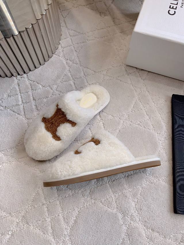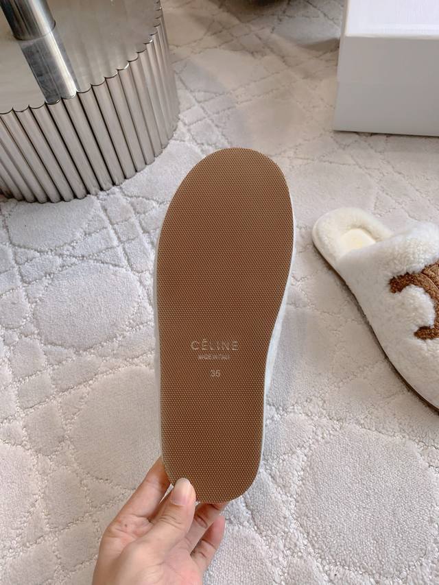 / 出厂价p Celin*新款羊毛半拖鞋 搭配神器 百搭不过时 脚感超级舒适 犹如踩在云朵般的感觉 慵懒又时髦 面料进口澳洲羊毛 内里垫脚羊毛 原版开模大底 尺码3