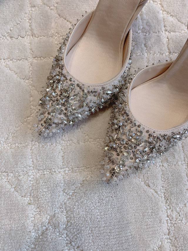 鞋面真丝手工缝制超闪水钻 内里羊皮 垫脚真丝 原版进口Ar1顶级真皮大底 跟高10Cm 尺码35-39 34.40.41.42.43定做