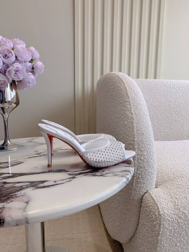鞋面进口超闪水钻 垫脚羊皮 原版进口Ar1顶级真皮大底 跟高 跟高8.5Cm 尺码35-39 34.40.41.42.43定做
