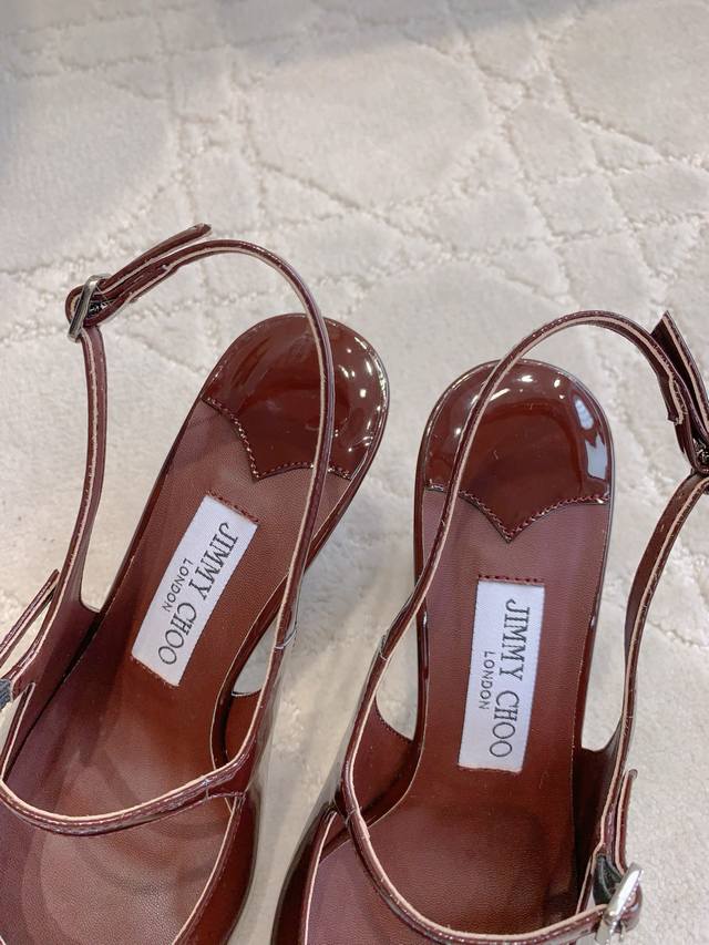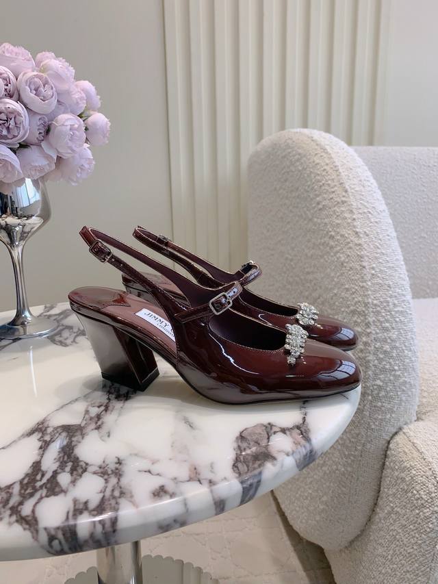 Jimmy Cho*新款水钻漆皮后空高跟鞋 经典百搭款 粗跟设计非常好穿