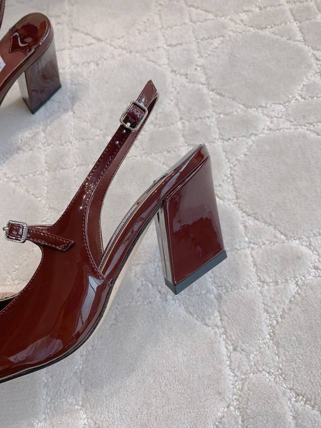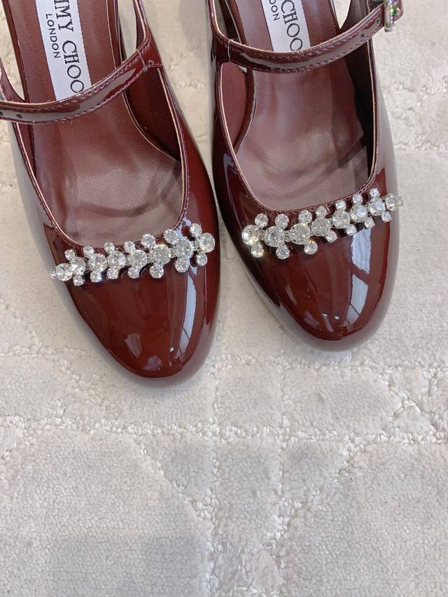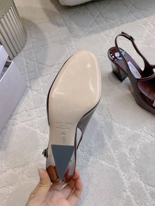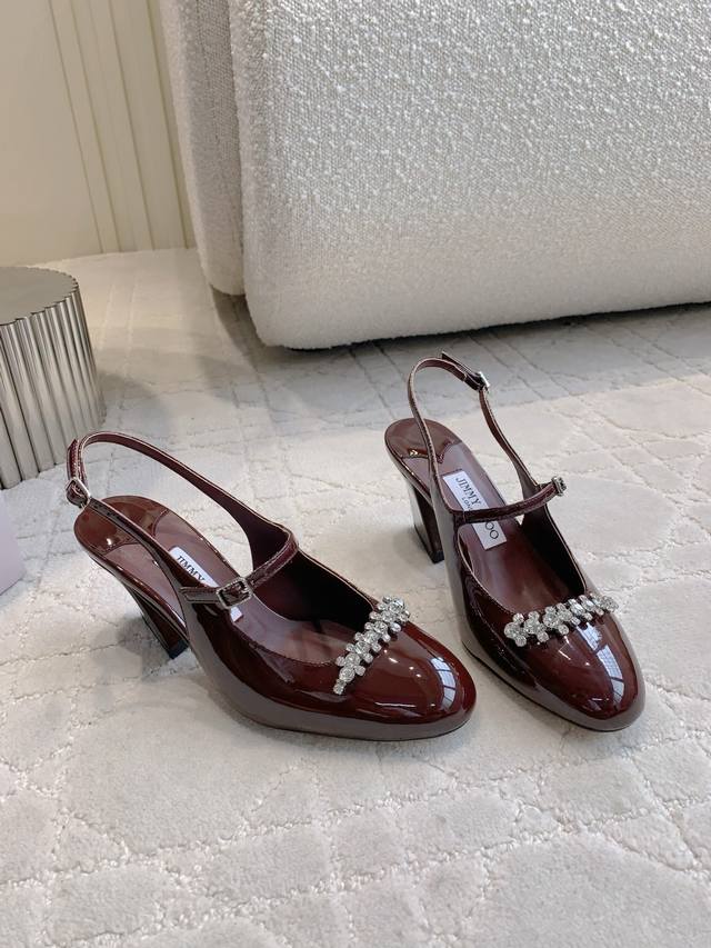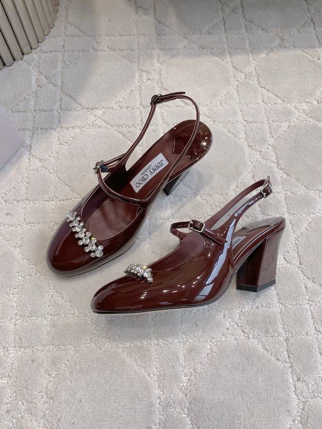 / 出厂价p Jimmy Cho*新款水钻漆皮后空高跟鞋 经典百搭款 粗跟设计非常好穿 鞋面牛漆皮 内里垫脚羊皮 原版开模水钻 跟高8Cm 意大利真皮大底 尺码35