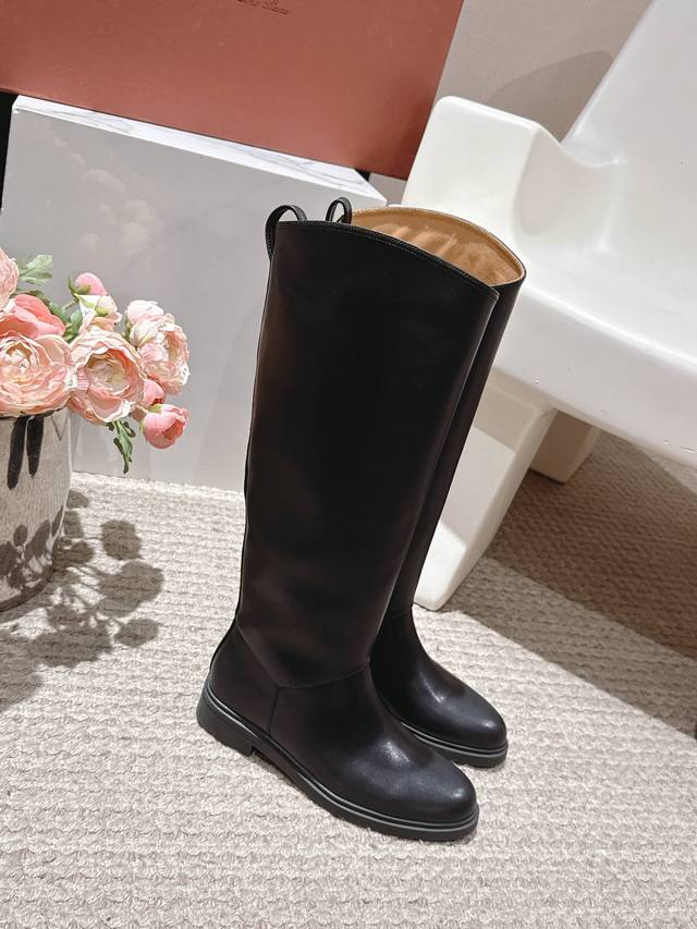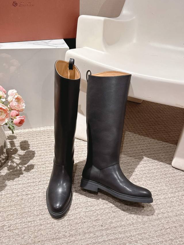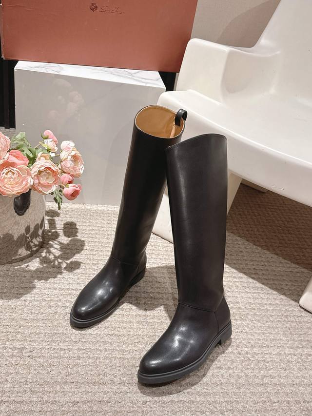出厂价p Loro piana25秋冬新款Lp简易一脚蹬厚底中靴!意大利顶级奢侈品牌 鞋面采用进口小牛皮 内里 垫脚水染牛皮 原版开模轻质橡胶大底 码数:35-