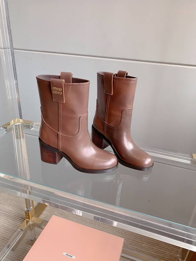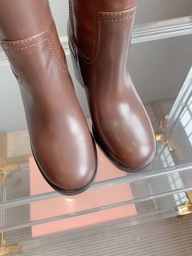 Miu新款粗跟直筒短靴 超好穿的版型 非常修饰腿型 上脚实在泰酷辣