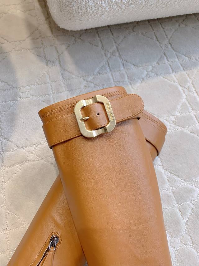 / 出厂价p Miu新款美少女战靴 高跟长靴,全球限量款闭眼可入,朋克风满满,上脚绝绝子!既能当甜妹又能扮拽酷越看越上头。 鞋面羊皮 靴筒弹力pu 垫脚羊皮 意大利