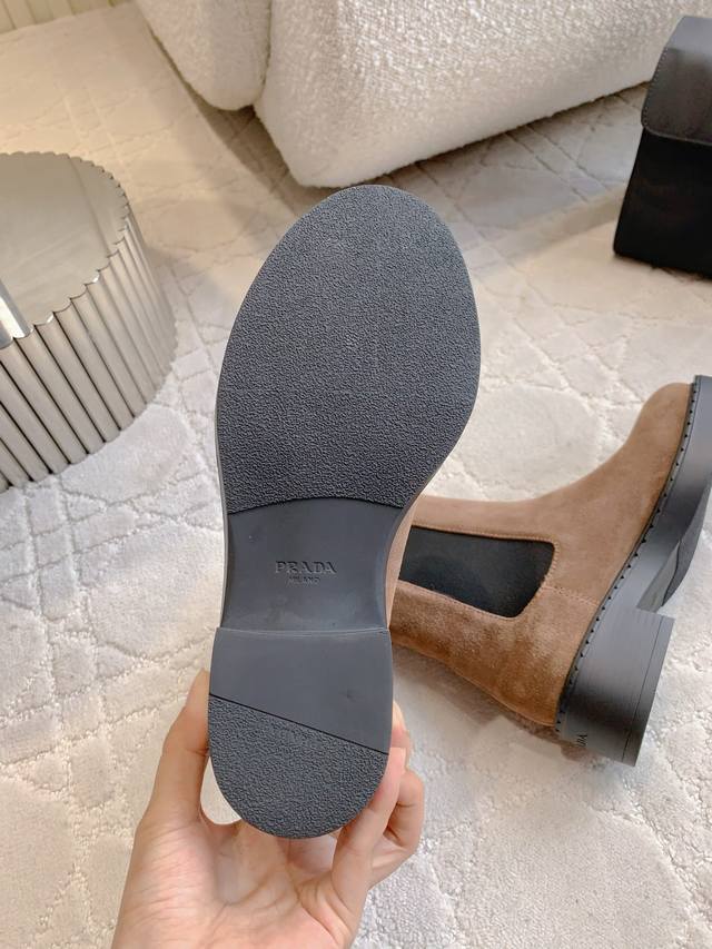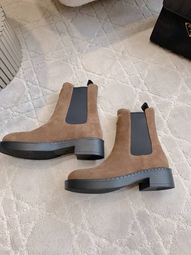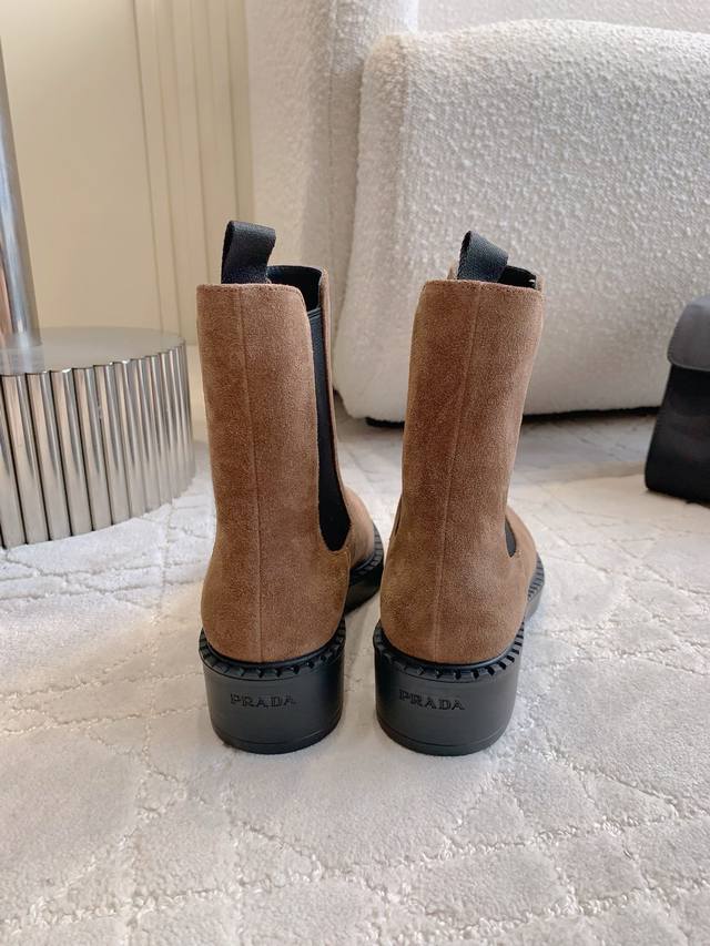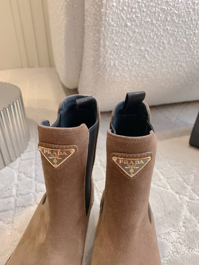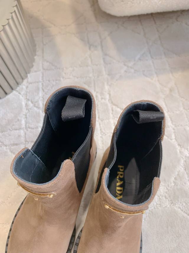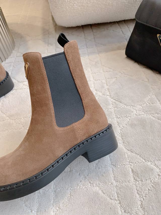 prad*新款三角标厚底短靴 经典三角标装饰 鞋型流畅帅气 超好穿 上脚简直酷炸了 万年百搭靴
