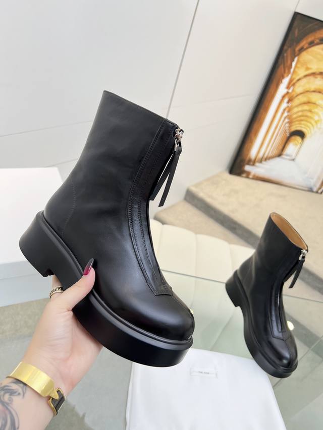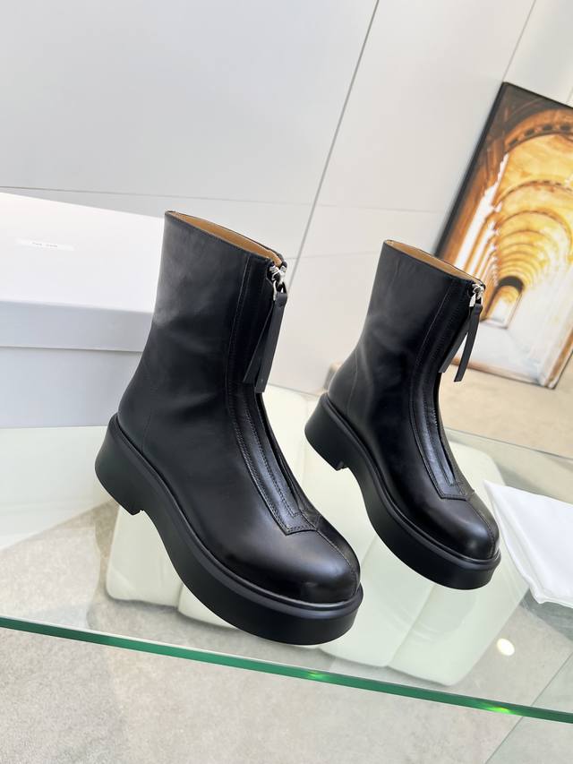 出厂价p The.Row升级版本刘雯同款 顶级品质The Row秋冬经典厚底短靴。刘雯同款,超多明星示范原版购入 顶级还原。鞋面原版定制进口小牛皮超柔软混种羊皮内里垫脚。前拉链的设计,简约时髦!上脚超舒服超修脚。开模鞋底一体成型的pu发泡材质,与原版一致很轻很软!原版配套。35-40 41码可定做不退换