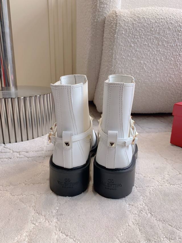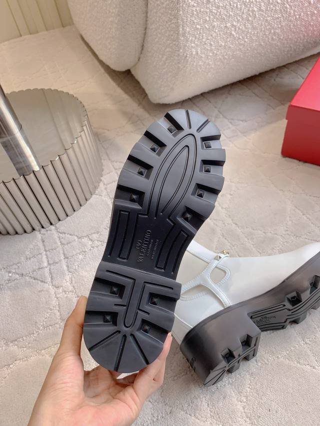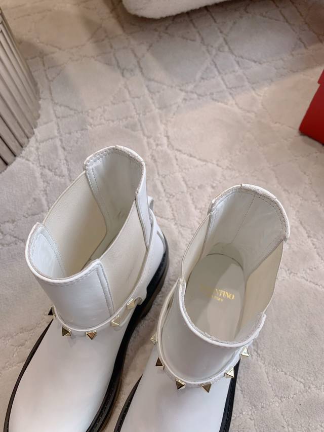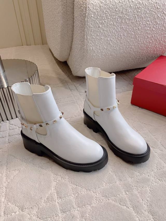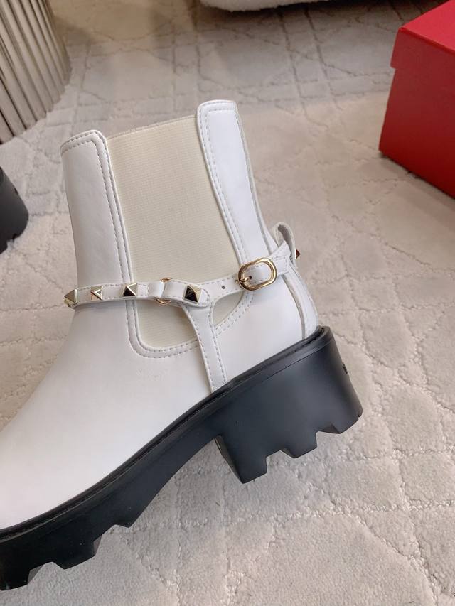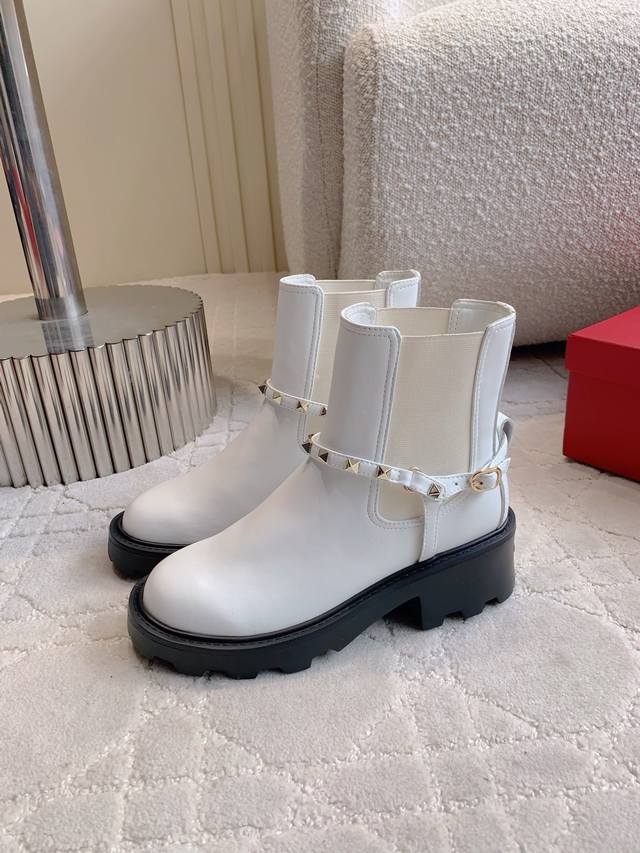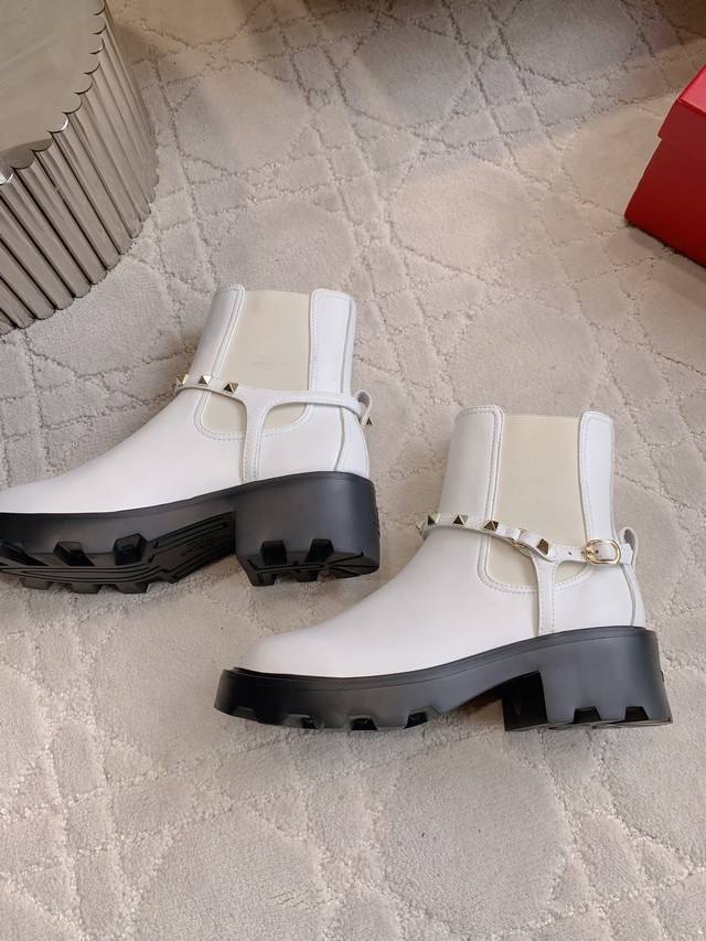 Valentin*新款厚底切尔西短靴 挺拔有型 上脚又帅又飒 经典铆钉装饰 低调又不失精致 鞋底有一定厚度 超显腿长
