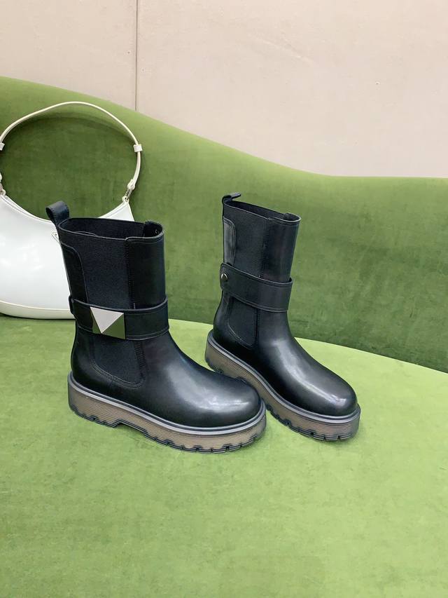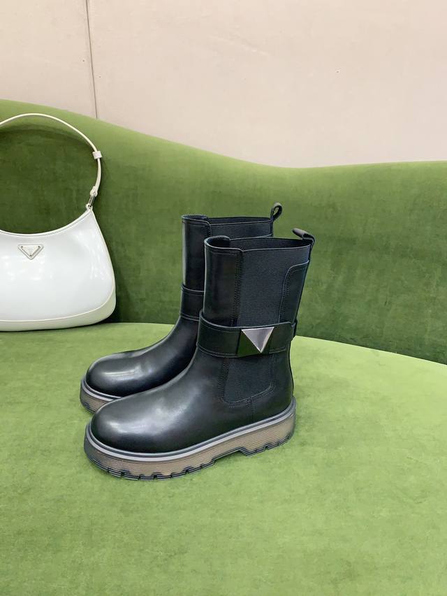/ 出厂价p Valentin*新款大铆钉厚底切尔西短靴 铆钉带可拆卸 一靴两穿 鞋型硬朗帅气 又酷又飒 上脚效果超赞 鞋面原版小牛皮 内里垫脚羊皮 原版开模大底