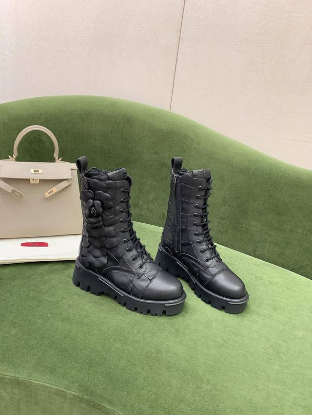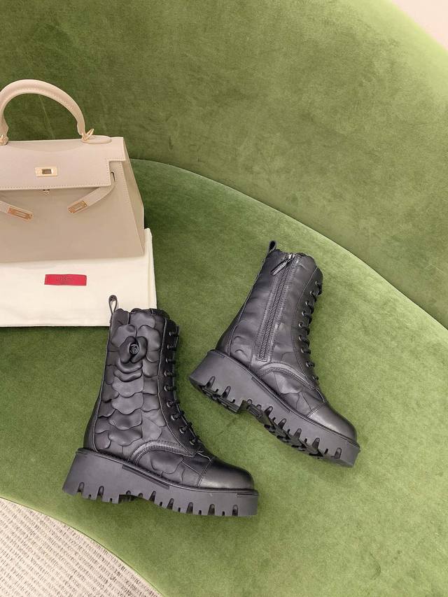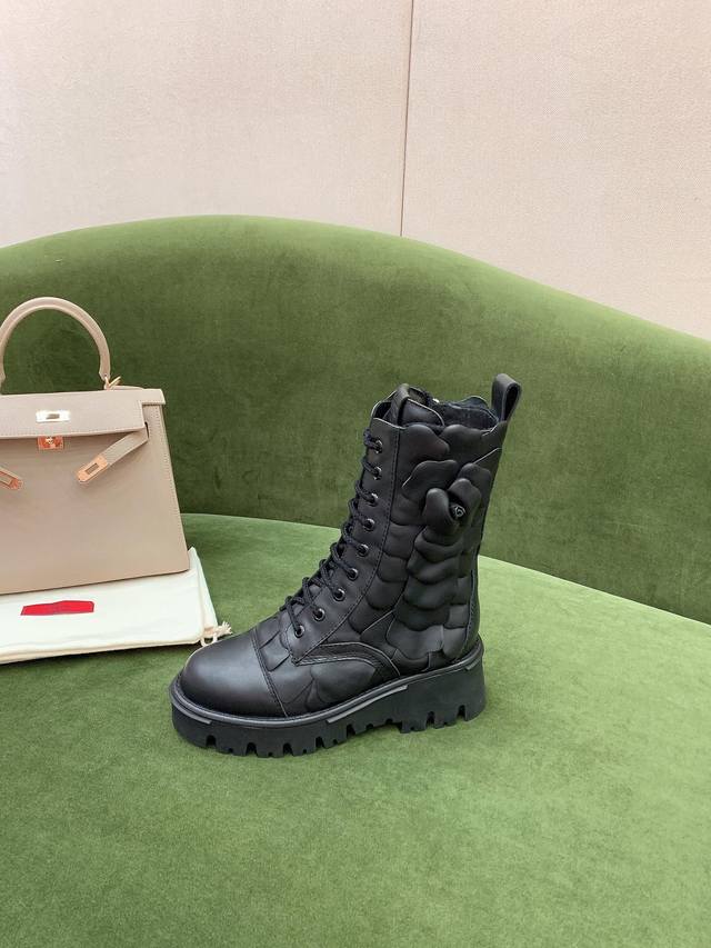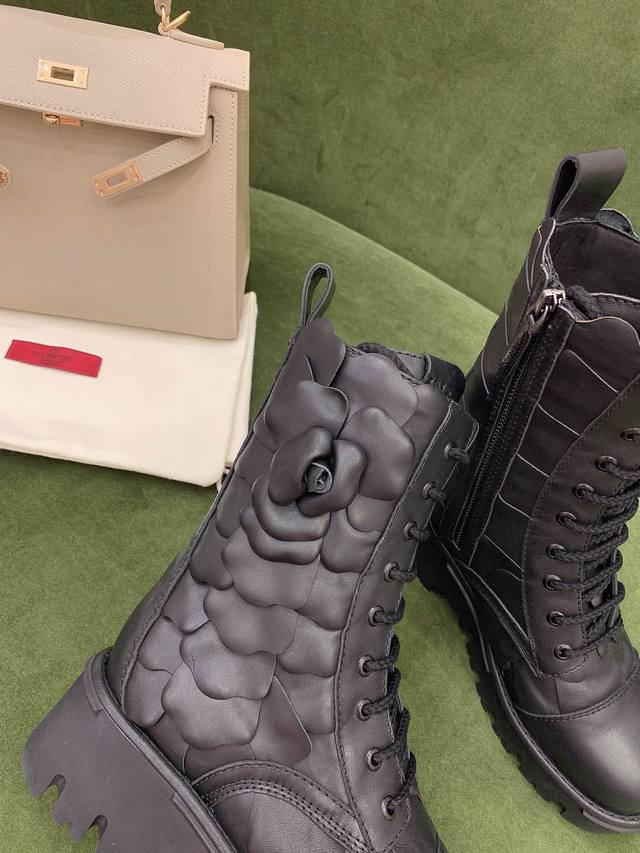 出厂价p Valentin*新款花朵短靴 非常重工 鞋面原版小牛皮 内里垫脚羊皮 原版开模大底 码数35-39 40定做
