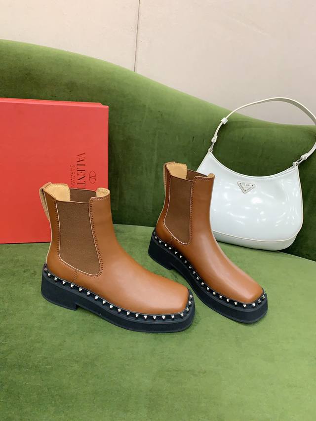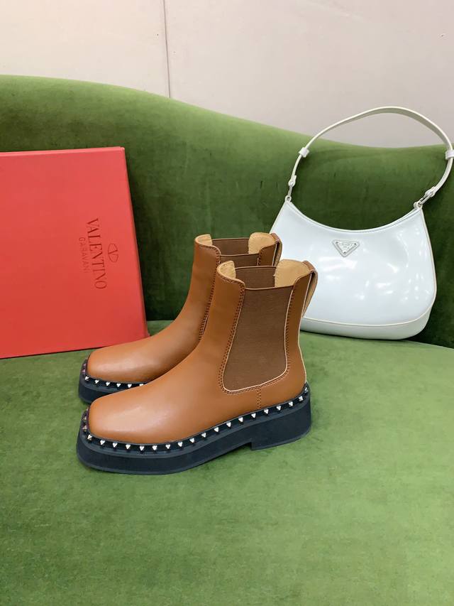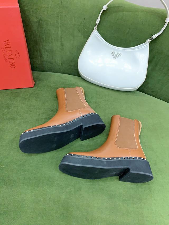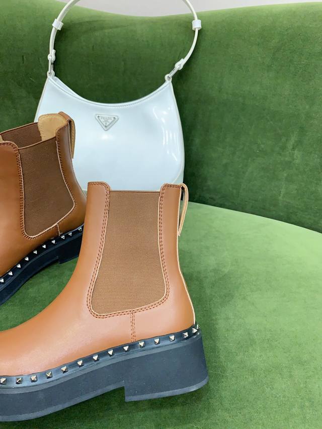 Valentin*新款铆钉切尔西短靴 鞋型硬朗帅气 又酷又飒 上脚效果超赞
