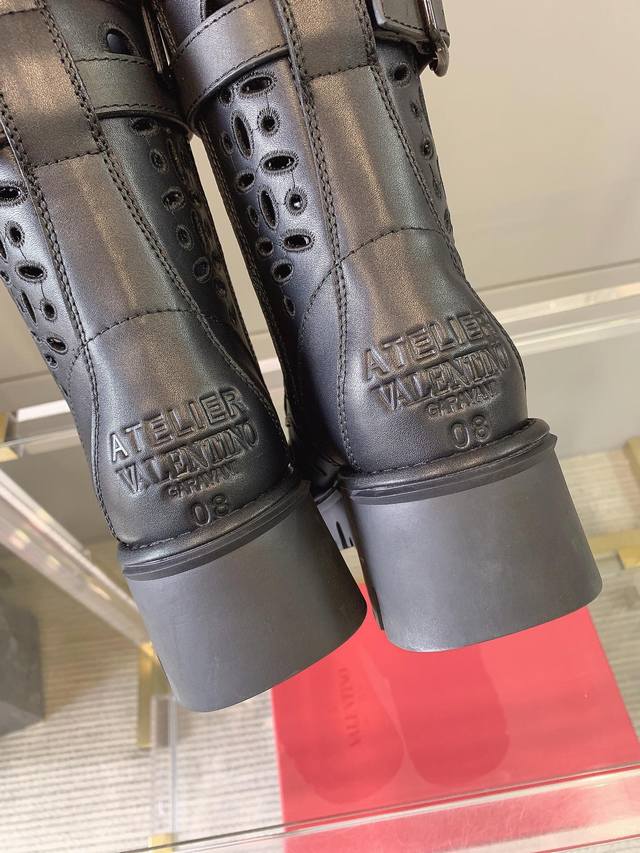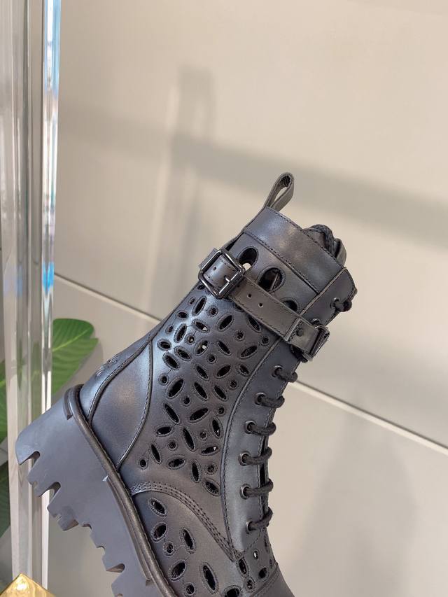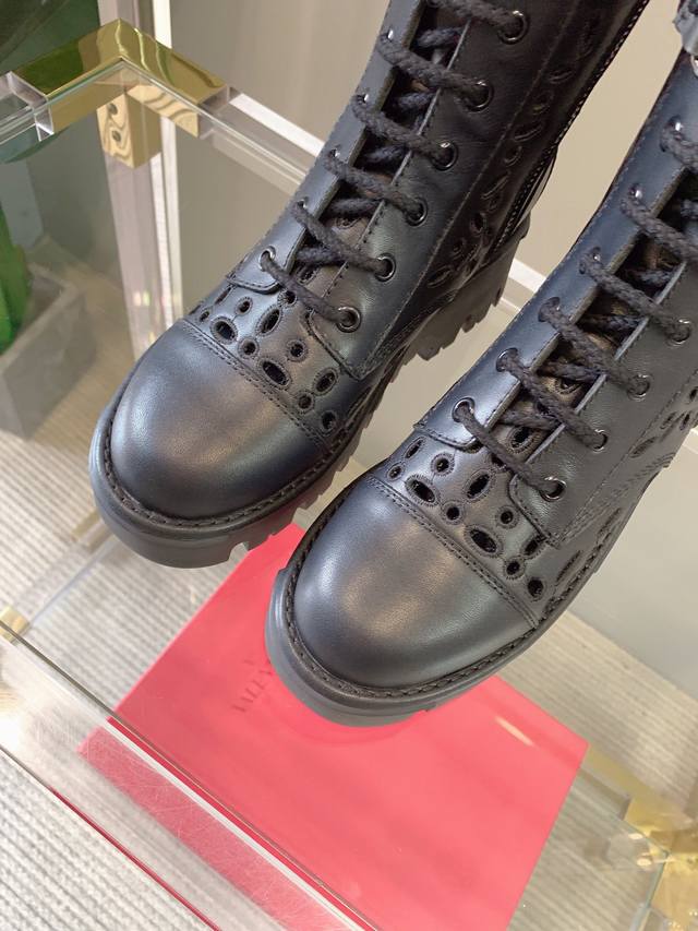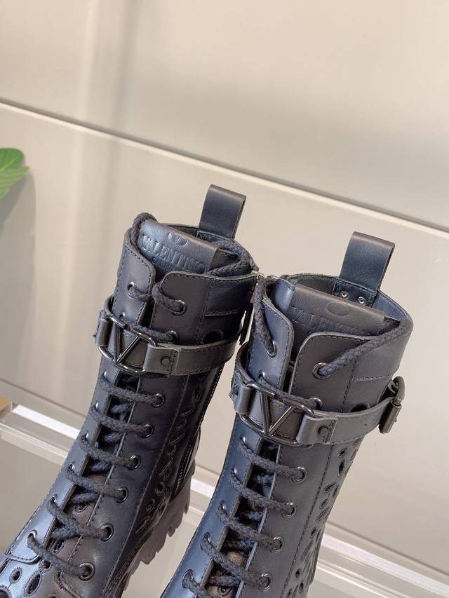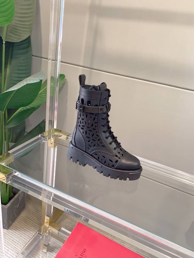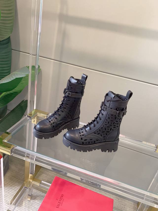 出厂价p Valentin*新款镂空刺绣短靴 鞋面原版小牛皮 内里垫脚羊皮 原版开模大底 码数35-39 40定做