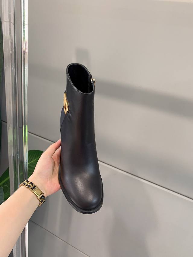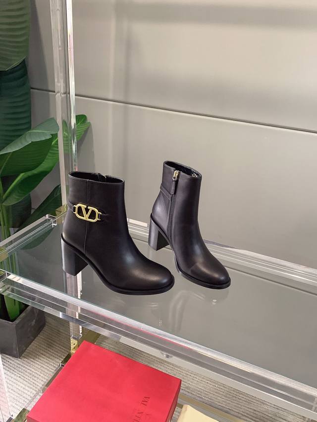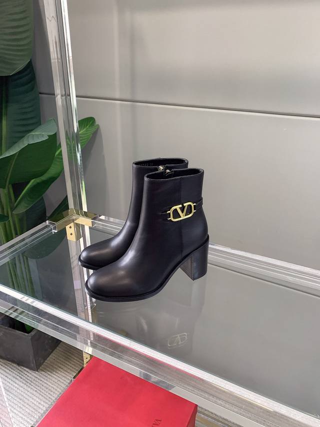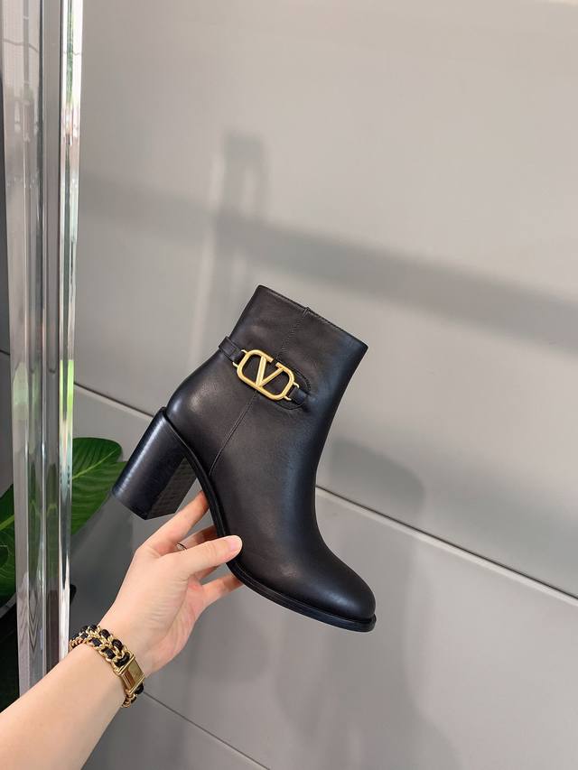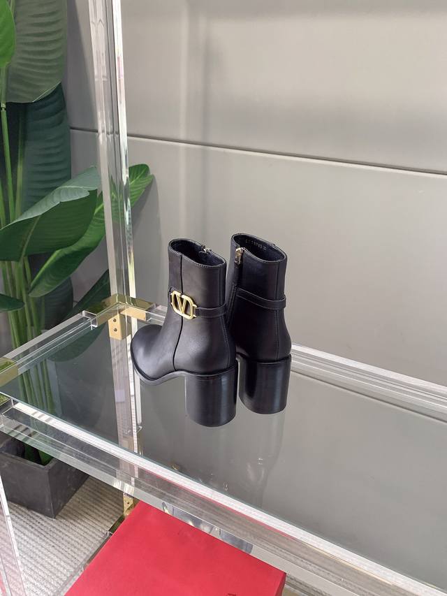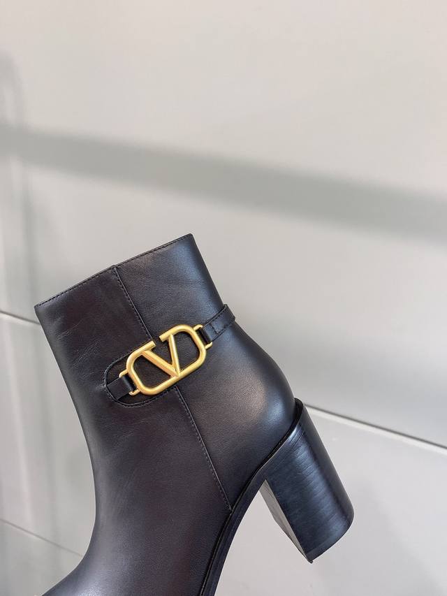 / 出厂价p Valentin*秋冬新款V扣高跟短靴 经典舒适百搭 鞋面原版小牛皮 原版开模五金扣 内里垫脚羊皮 意大利真皮大底 跟高7.5Cm 码数35-39 4