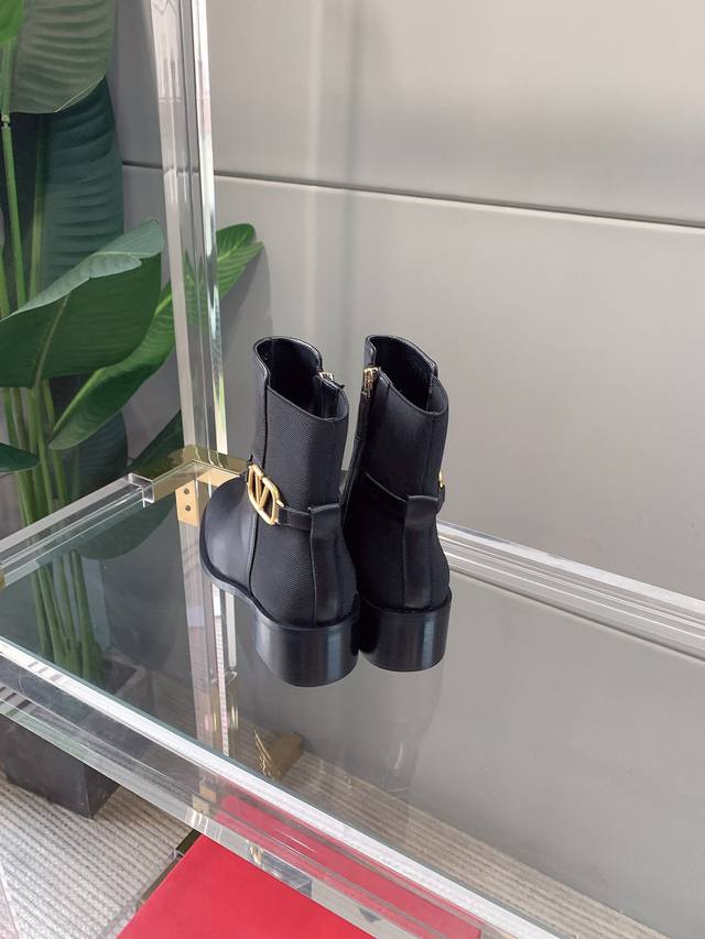 出厂价p Valentin*秋冬新款V扣高跟短靴 经典舒适百搭 鞋面羊京 小牛皮 原版开模五金扣 内里垫脚羊皮 意大利真皮大底 跟高3Cm 码数35-39 40