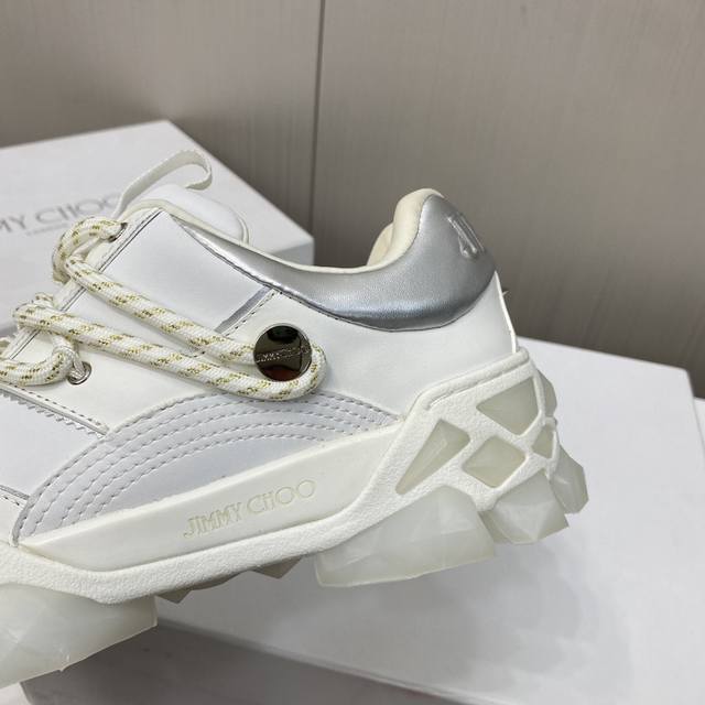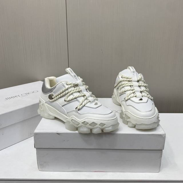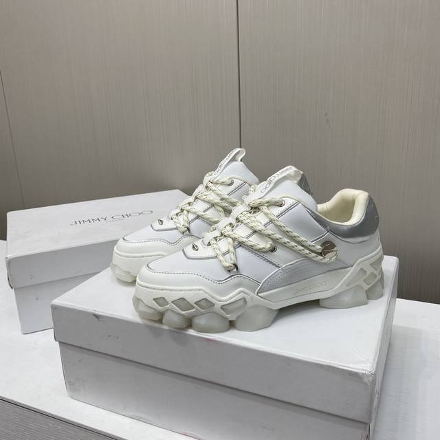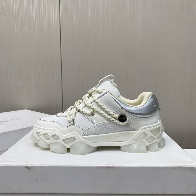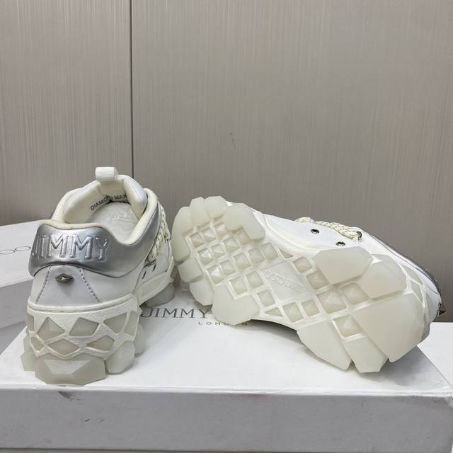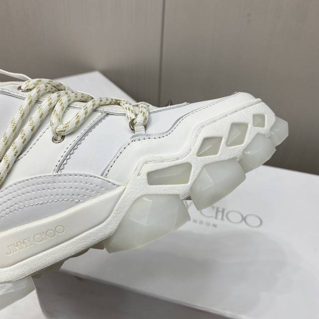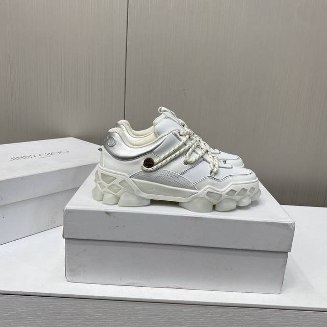 Jimmy Choo 吉米周 2025春夏新款Diamond X Ii M 系列老爹鞋火爆上新,柔软皮革材质精心制作,立体廓形比例夸张,成就别具一格的个性运动潮履 别致鞋底采用品牌标志性 Diamond 仿钻石多切面塑形,营造舒适包裹感与显高视觉感精巧微调的莱卡内衬搭配孔眼设计便于排出鞋内空气和水分,令脚部更加透气舒爽巧妙采用多种材质,贴心加厚鞋垫,令您的周末或休闲时光脚感更加轻盈灵巧,舒适时尚!