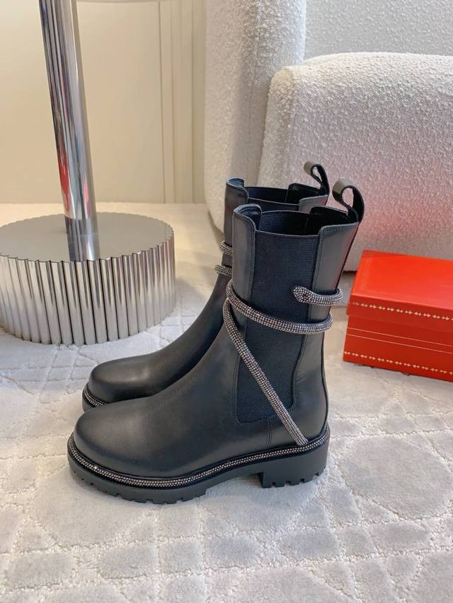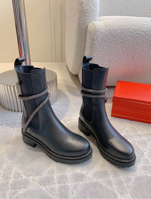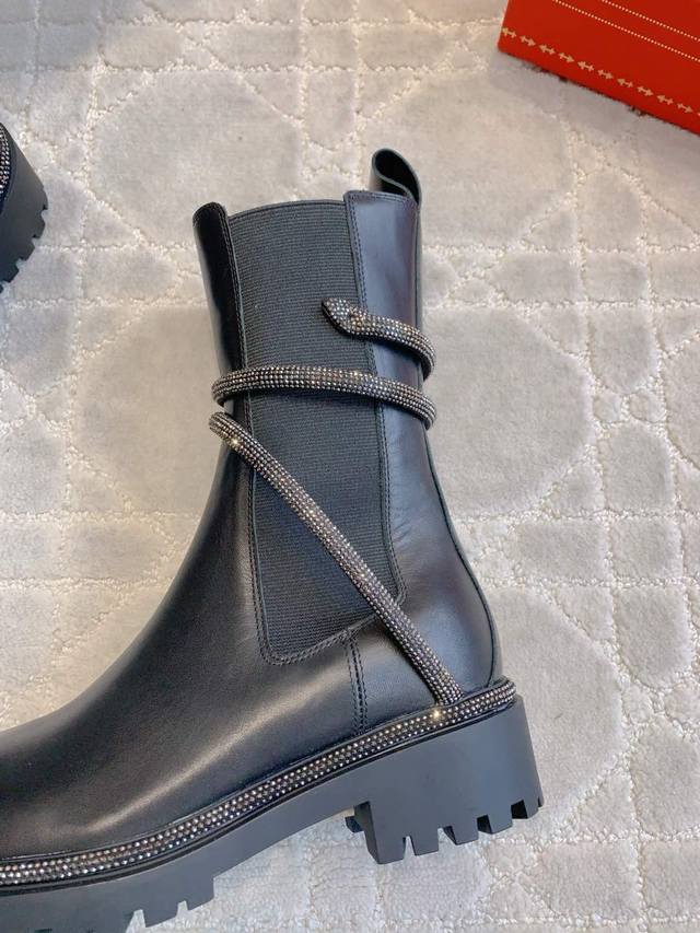 / 出厂价pp Ren* Caovill*经典款水钻蛇形短靴 明星同款 上脚又酷又飒 百搭战靴 鞋面小牛皮 内里垫脚羊皮 原版开模大底 尺码35-39 34 40