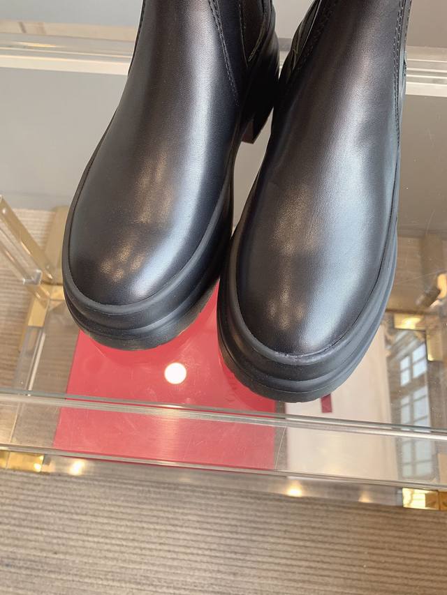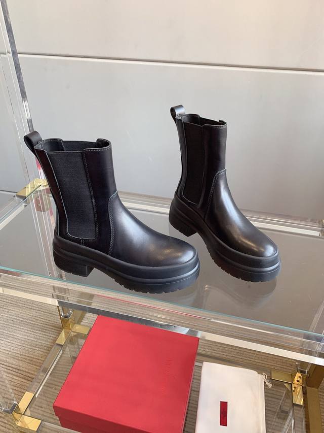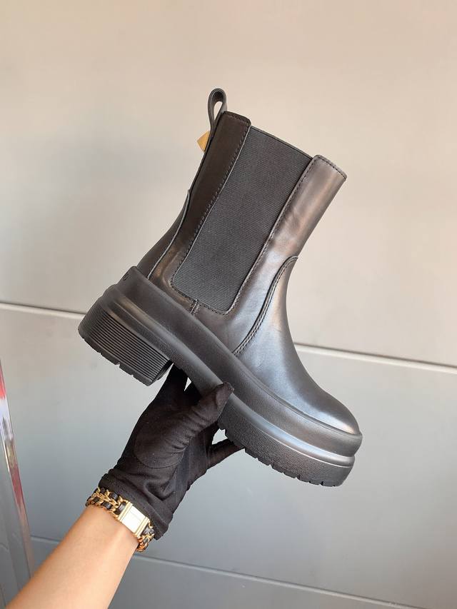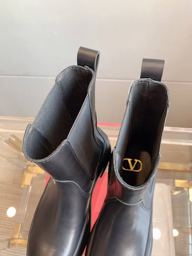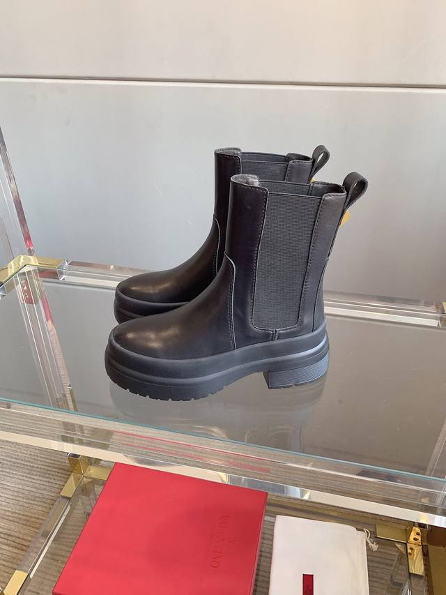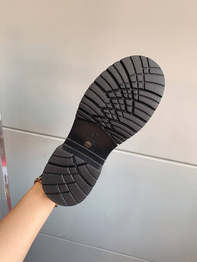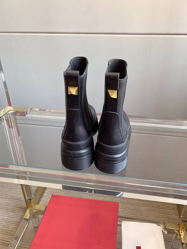 出厂价pp Valentin*新款厚底短靴 后跟大铆钉装饰 松紧设计方便穿脱 鞋面小牛皮 羊京 内里垫脚牛皮 尺码35-39 40定做