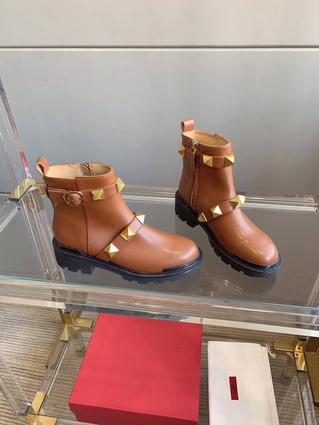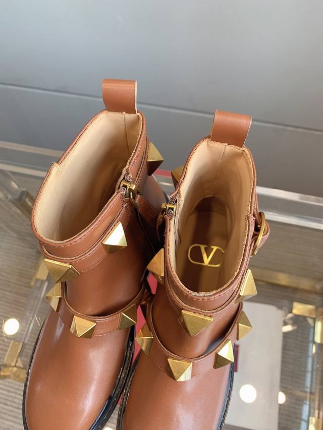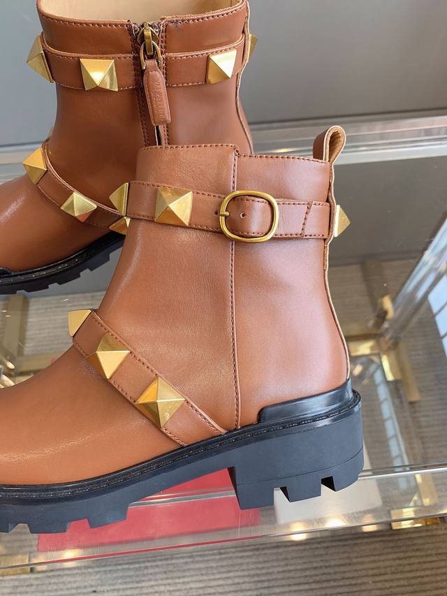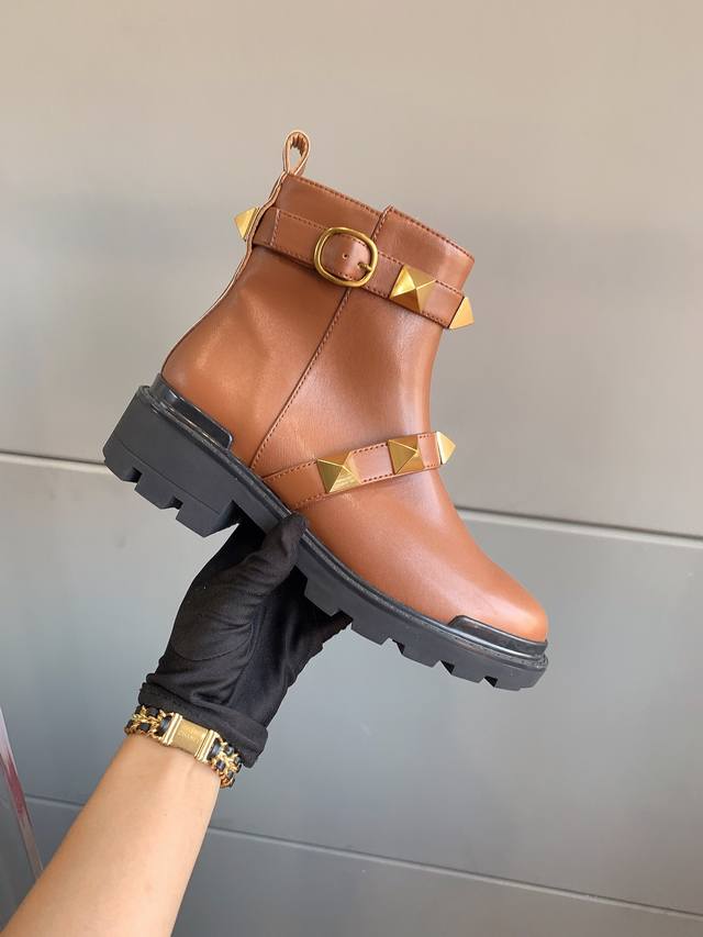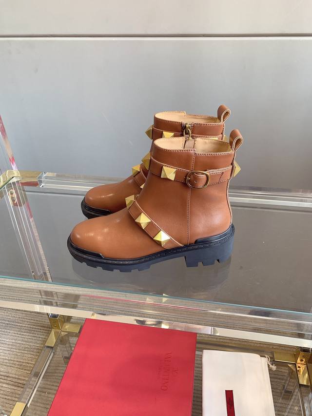 出厂价pp Valentin*新款大铆钉系列短靴 鞋面牛皮 内里垫脚羊皮 原版开模大底 尺码35-39 40定做