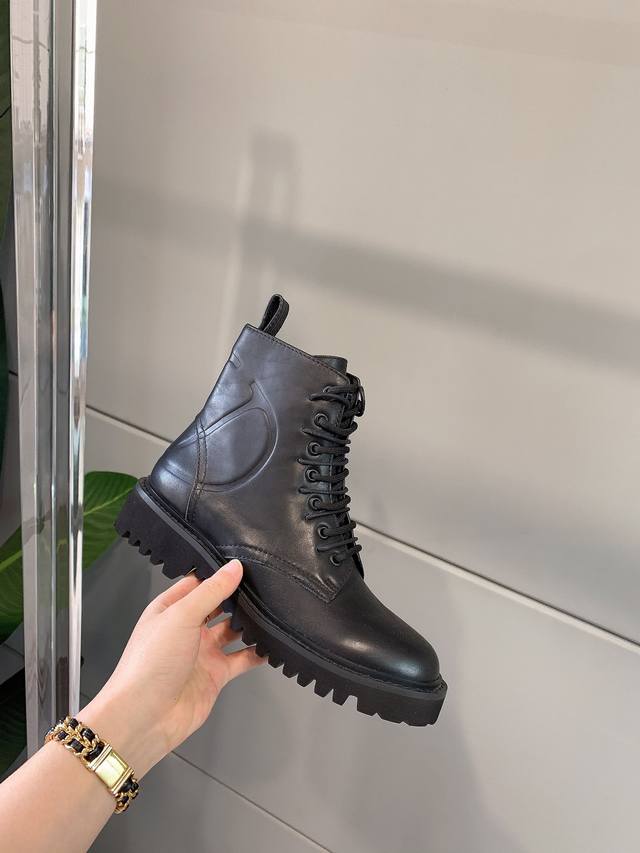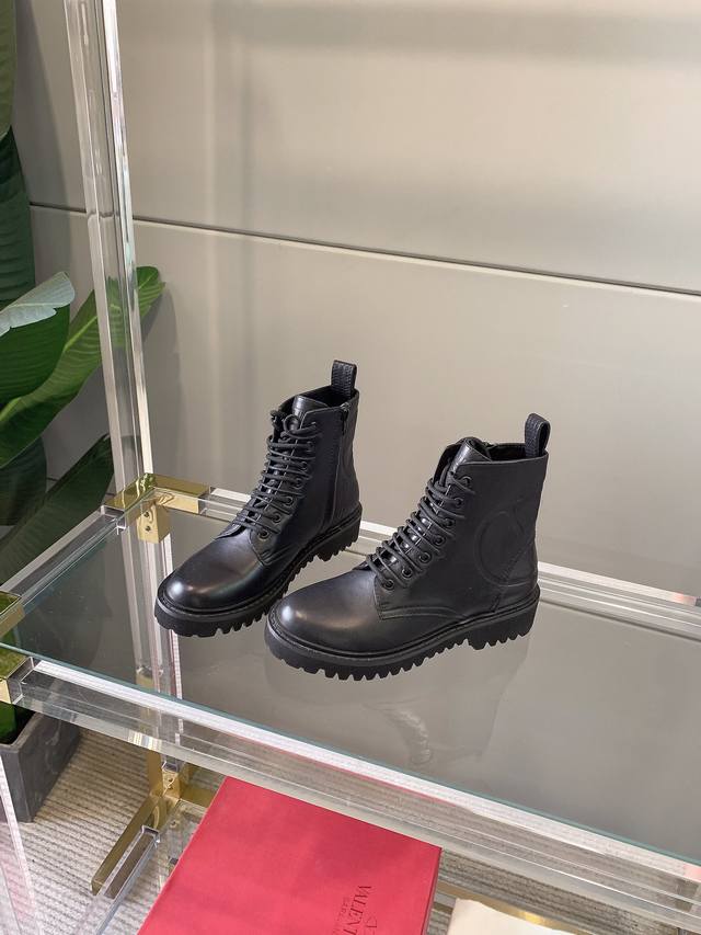 出厂价pp Valentin*新款大Logo机车靴 鞋面小牛皮 内里垫脚牛皮 原版开模成型底 码数35-39 34 40 41定做