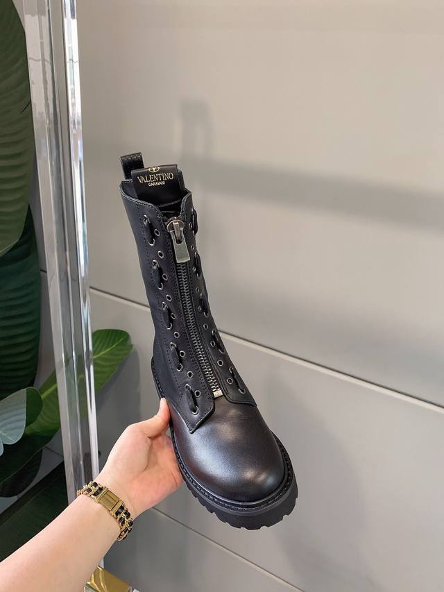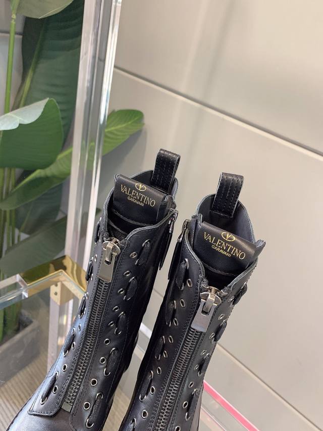 出厂价pp Valentin*新款机车短靴 鞋面原版小牛皮 内里垫脚牛皮 原版开模成型底 码数35-39 34 40 41定做