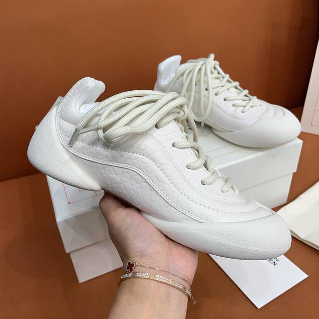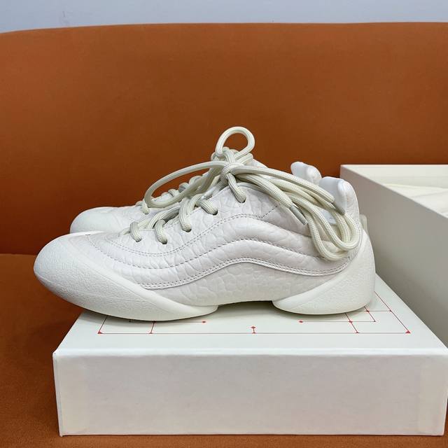 两种不一样的鞋带交替,不一样的层次感这次的设计长在我的审美上,也是第一款可折叠的软底鞋面采用全粒纹皮革及绒面皮革材质 轻盈兼具包裹感,码数35-44