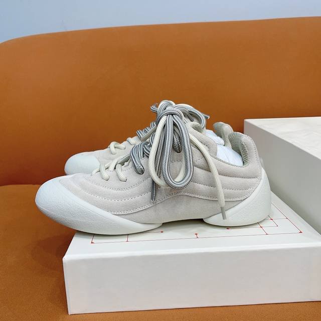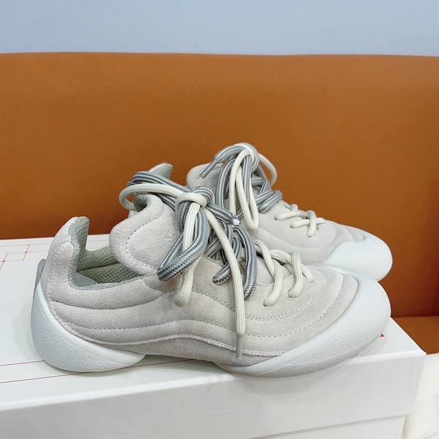 两种不一样的鞋带交替,不一样的层次感这次的设计长在我的审美上,也是第一款可折叠的软底鞋面采用全粒纹皮革及绒面皮革材质 轻盈兼具包裹感,码数35-44