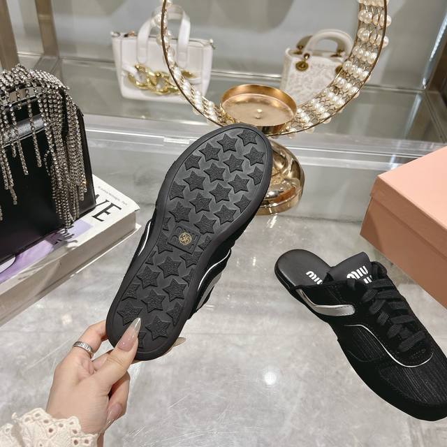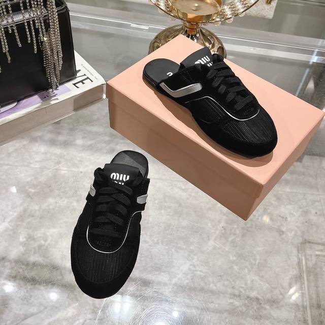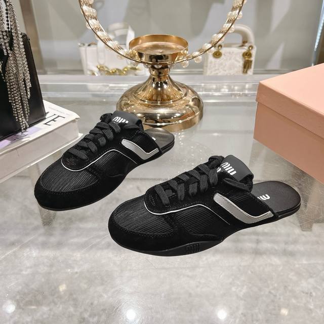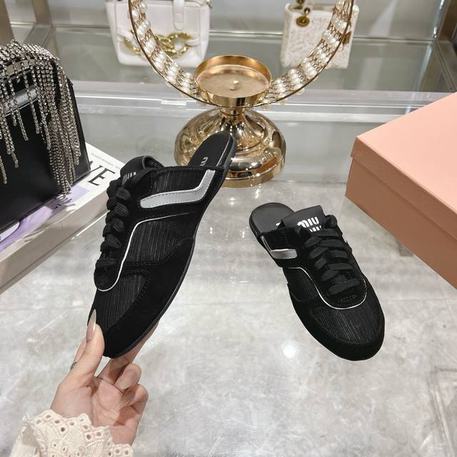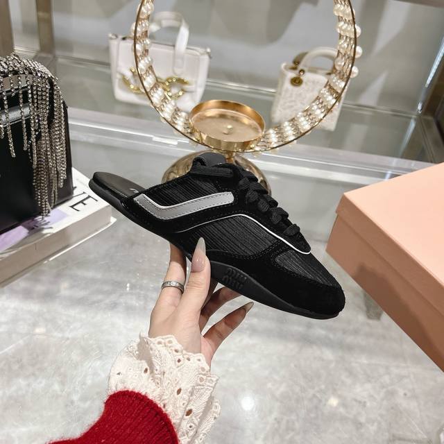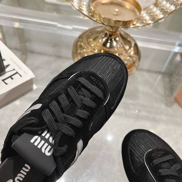 出厂拖鞋 代购级别独家首发miumiu缪缪透气网布休闲鞋2025春夏新款英伦风系带miumiu秀场工艺来自miu Miu系列的细节特写 新季多色 拼色拼接潮流要素一