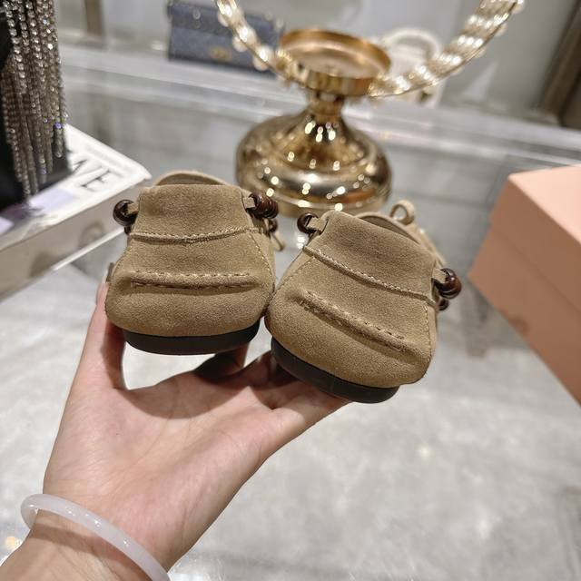 出厂拖鞋 单鞋50Miu Miu 系带鸡眼平底豆豆鞋 缪缪Miumiu25秋冬新款 一脚蹬 复古鞋 俏皮的系带流苏复古的干异色系 内里磨毛的设计 让穿着的体验更
